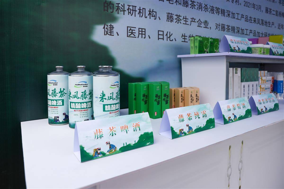 大会发布《藤茶冲泡与品鉴方法》团体标准、《藤茶营养报告》和《来凤藤茶产业高质量发展报告》,推荐藤茶啤酒、藤茶精油、藤茶咖啡等十余种藤茶系列新品。活动聘任来凤藤茶推广大使和国际友谊使者,并举行“北京万人评茶邀请赛—来凤藤茶专场”颁奖仪式和双招双引藤茶项目集中签约仪式,现场签订来凤县迦南藤茶啤酒生产项目等4个招商引资项目和2个产业合作协议。