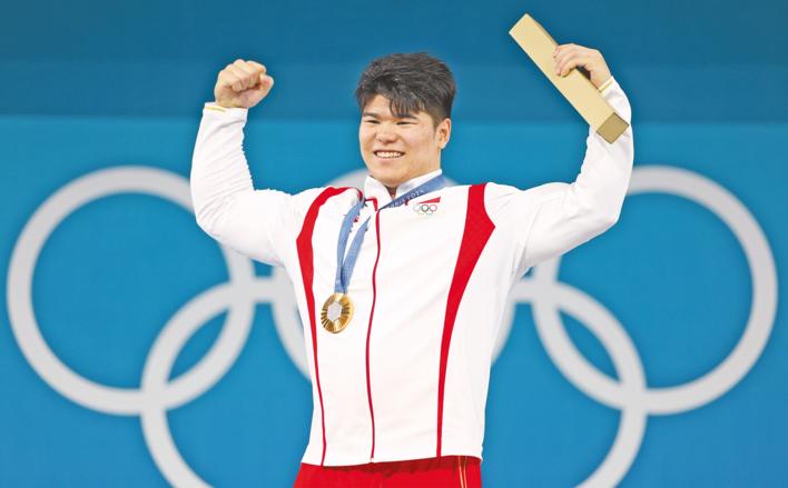 刘焕华 男子举重102公斤 第三十四金 北京时间8月10日,巴黎奥运会举重男子102公斤级在南巴黎竞技场进行。10天后将迎来23岁生日的刘焕华以抓举186公斤、挺举220公斤,总成绩406公斤夺冠,这也是中国男子举重大级别的新突破。(新华社发)