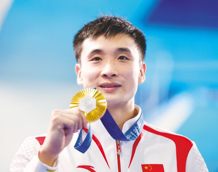 曹缘 跳水男子10米台 第三十六金 北京时间8月10日晚,上届冠军曹缘勇夺巴黎奥运会跳水男子10米台金牌,中国跳水队就此实现包揽本届奥运会跳水项目8金目标。(新华社发)