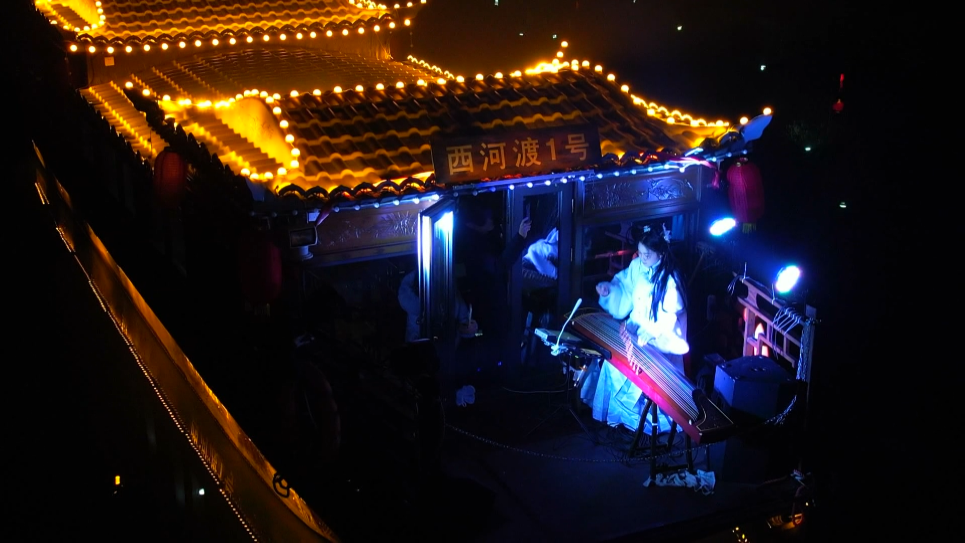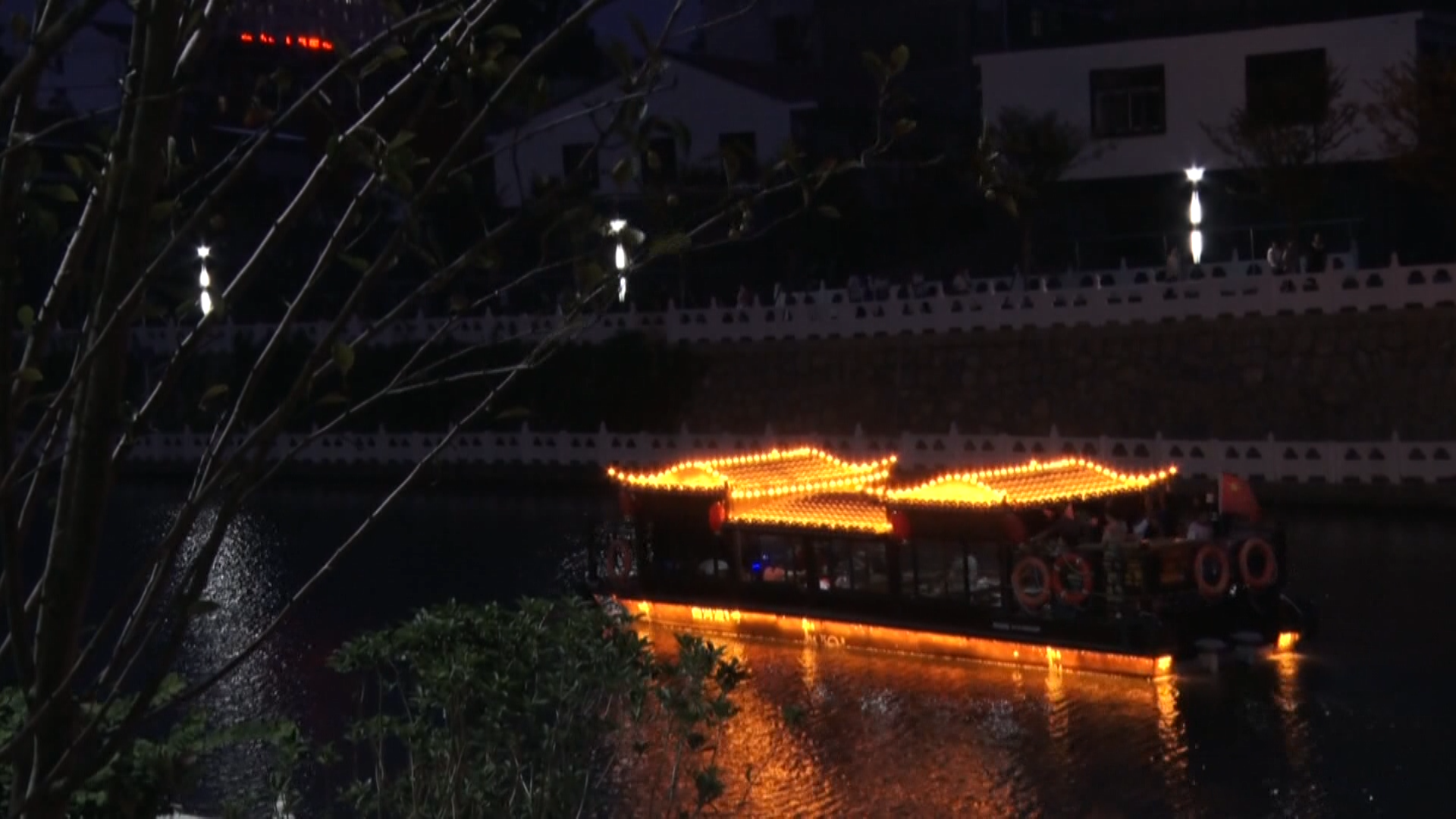 夜幕时分,河面上游船轻摇,宛如点点星光在波光粼粼中穿梭。桥头,霓虹闪烁,与古色古香的店铺门楼交相辉映。游船上,窗外的景致如画卷般缓缓展开,乘客们悠然自得,享受着属于自己的宁静时光。