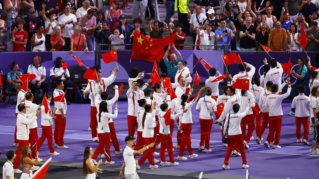 巴黎奥运会闭幕式上,中国健儿登场。本届奥运会,中国体育代表团收获40金27银24铜。为你们骄傲!