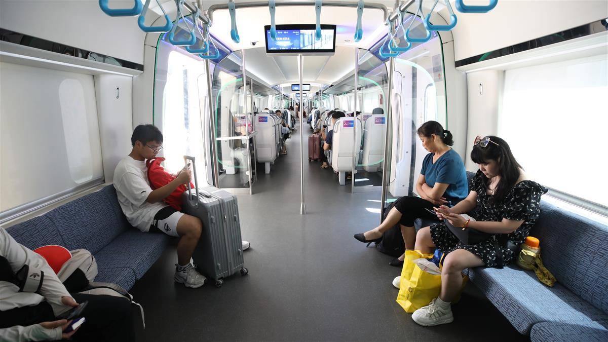 8月9日,市民乘坐新城快线列车。