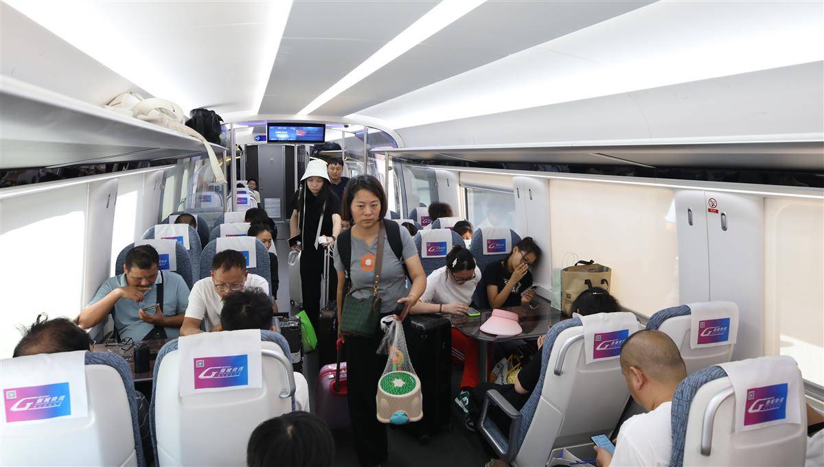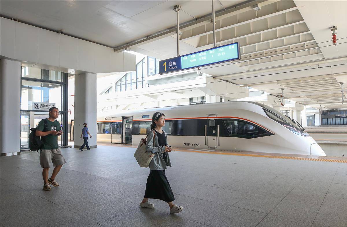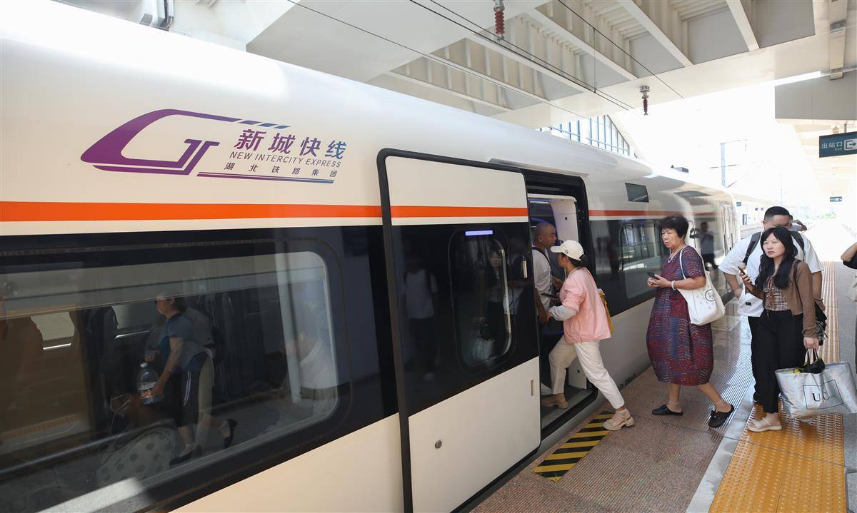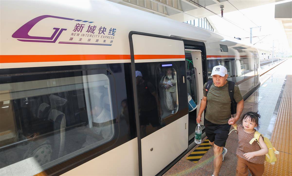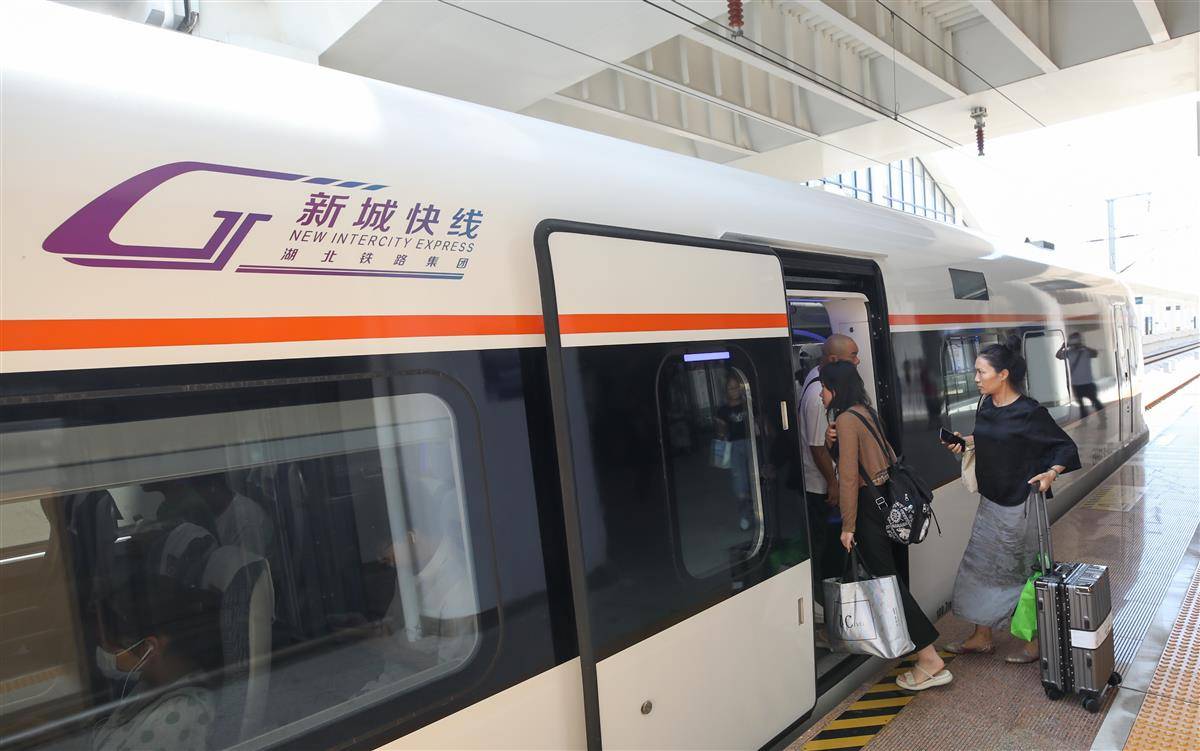 8月9日,旅客在武汉东站乘坐新城快线前往大冶北站。连通武鄂黄黄的城际铁路“新城快线”已开通6个月,半年间累计开行列车5400余列,发送旅客近60万人次,单日最高发送旅客达14243人次。今年1月24日,湖北铁路集团“新城快线”正式开通。半年来,经过多次调图优化,列车开行数量由最初的每日25列最高增至50列,黄石北、大冶北、黄冈西、鄂州站停靠的“新城快线”列车分别达到21列、20列、22列、21列,大大满足了沿线群众出行需求,乘坐“新城快线”已成为越来越多人的首选出行方式。