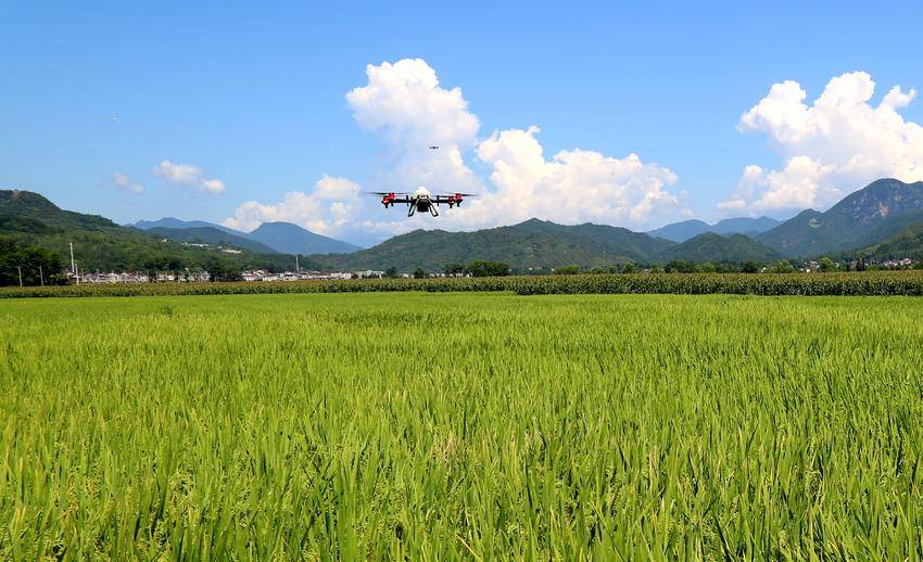 近日,在湖北省宜城市郑集镇金铺村,一架植保无人机腾空而起,在种田大户段成的1000亩稻田上空穿梭,投下一颗颗乒乓球大小的灰褐色弹丸。这个小小弹丸可不简单,里面装的是生物防治领域的“尖兵”——赤眼蜂。(选自 湖北日报客户端宜城频道 作者 钟军)