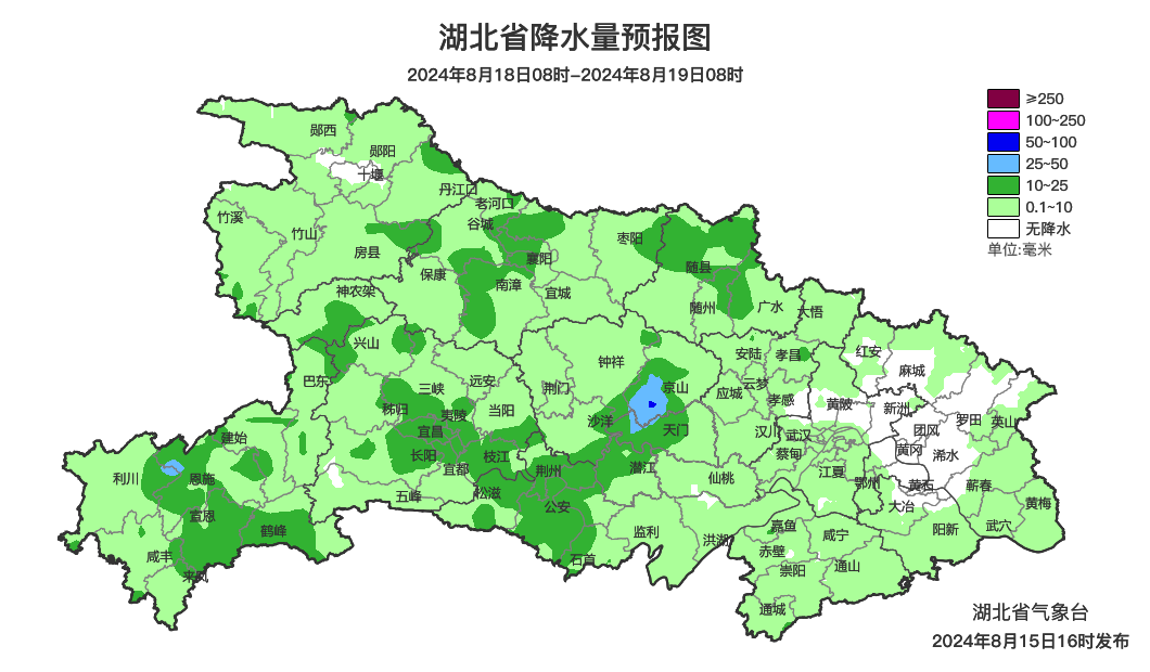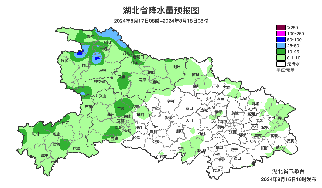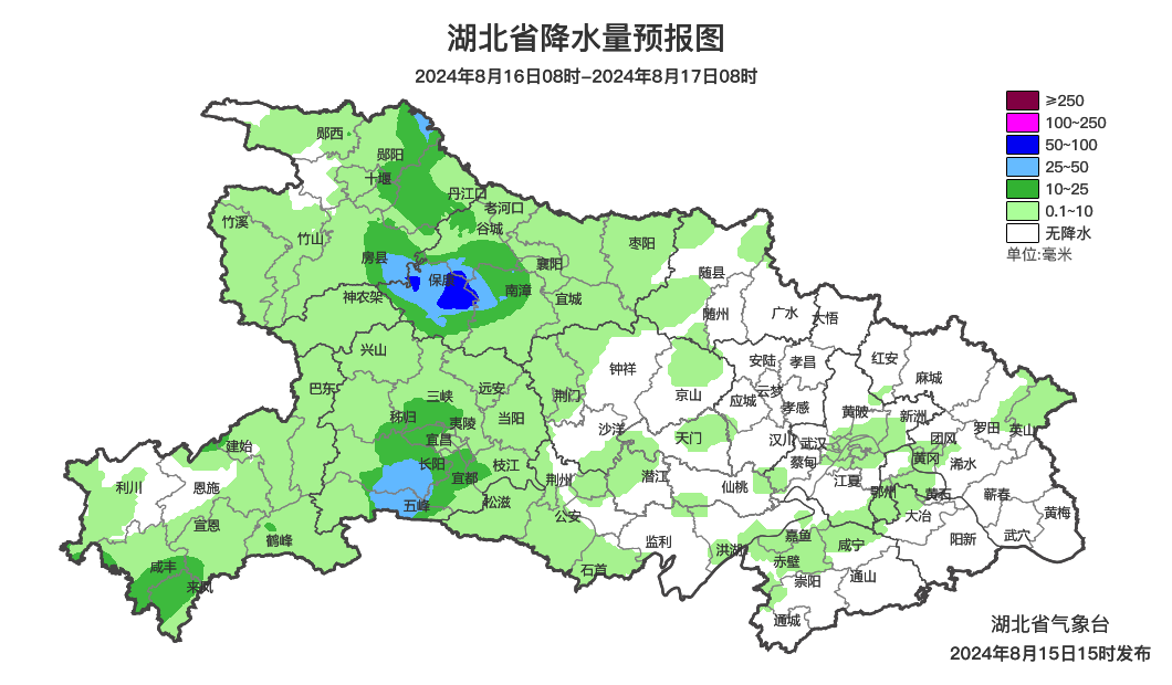 预报来源:湖北省气象台2024年8月15日16时预报