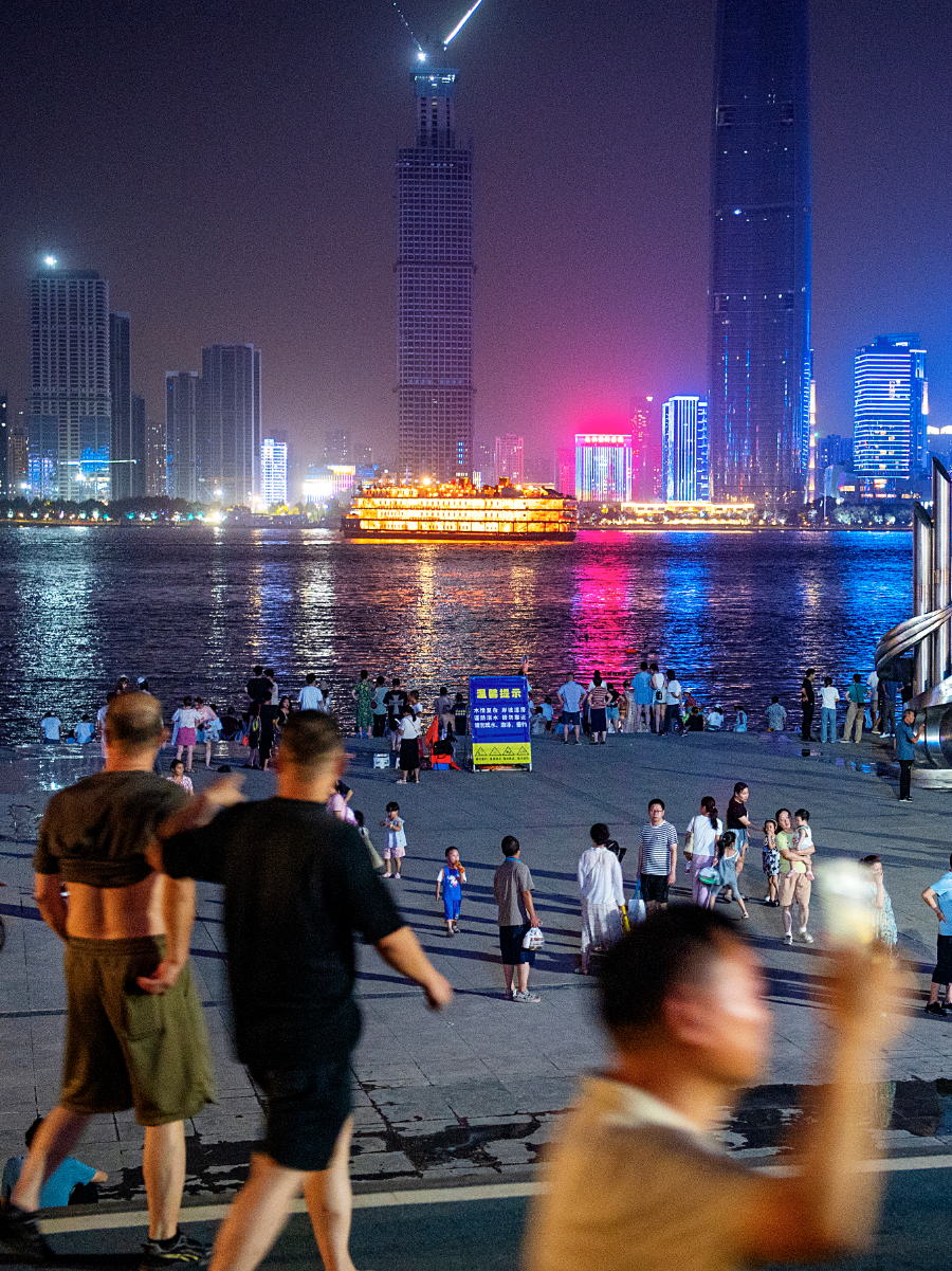 汉口江滩,惬意纳凉。(湖北日报全媒记者 朱熙勇 摄)