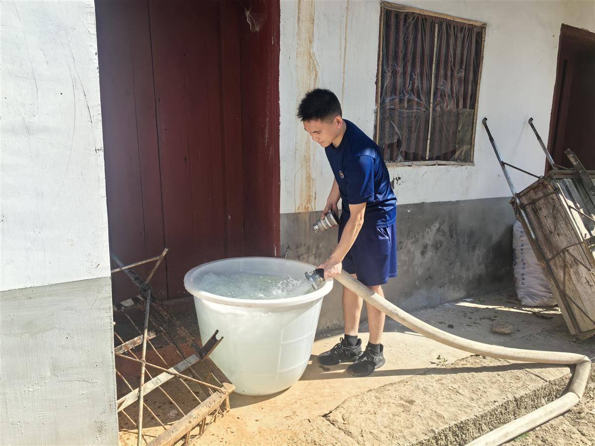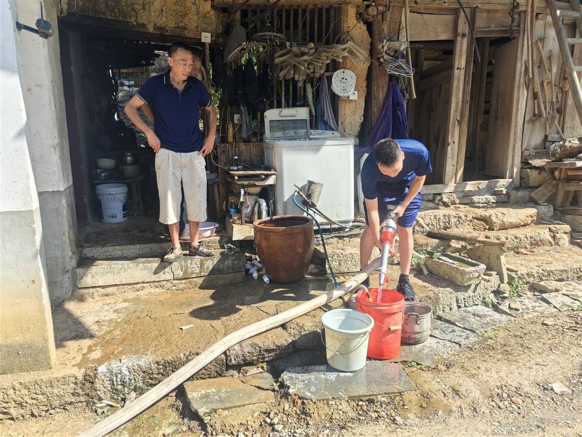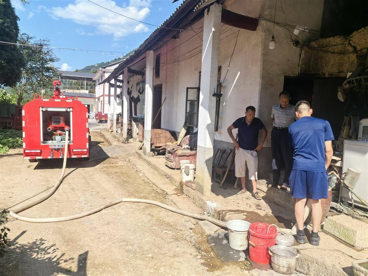 4户缺水村民得知消防送水,早早地准备好了水桶、水盆、水缸等盛水器具,翘首以盼地等在家门口。缺水农户居住地海拔高且分散,彼此相隔数公里。为此,每到一户送完水,消防员都要耐心地打听下一户。