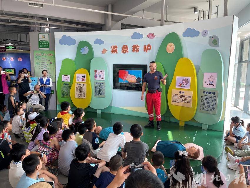 开营仪式后,孩子们在专业志愿者老师的带领下,通过生动有趣的讲解和互动式的参观体验活动,学习交通、消防、生命健康、防止意外伤害、地震、国防、环保、禁毒等八个区域的安全自护知识。在未成年人安全教育体验馆内,孩子们以实景模拟、视频讲解、角色体验等形式,沉浸式体验如何正确过马路、识别交通标志;如何操作灭火器,正确应对火灾;地震来临时,如何应急躲避与逃生;如何防溺水,掌握正确的泳姿和心肺复苏救护技能。通过培训学习,小朋友们不仅增强了安全防范意识,还提高了自我保护能力,掌握了应急处置技能。