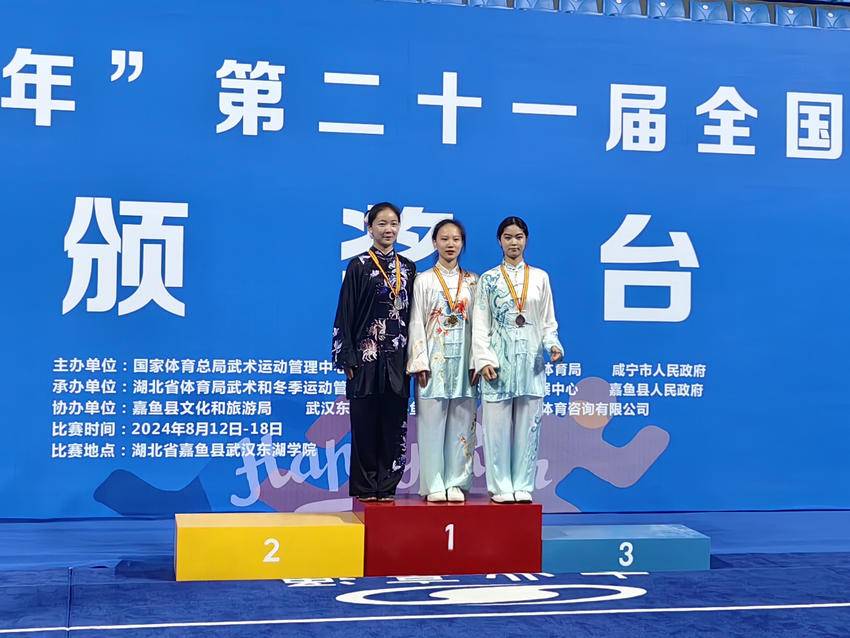 龚楚维同学在本次比赛中表现出色,不仅摘得了女子组吴式太极拳的桂冠,还在女子组42式太极剑项目中荣获第二名,更以出色的综合表现荣获女子组太极拳、太极剑全能项目的第一名,成为全场瞩目的焦点。