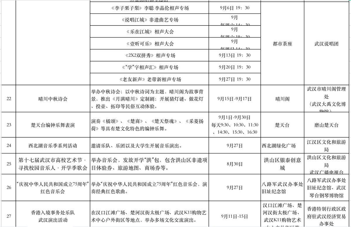 此外,还将在武汉大学、中国地质大学、中南民族大学、湖北工业大学、武汉体育学院、汉口学院等高校,设置武汉文旅迎新宣传点,欢迎各位新同学。