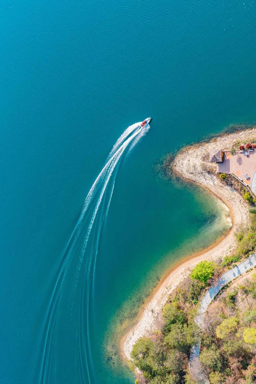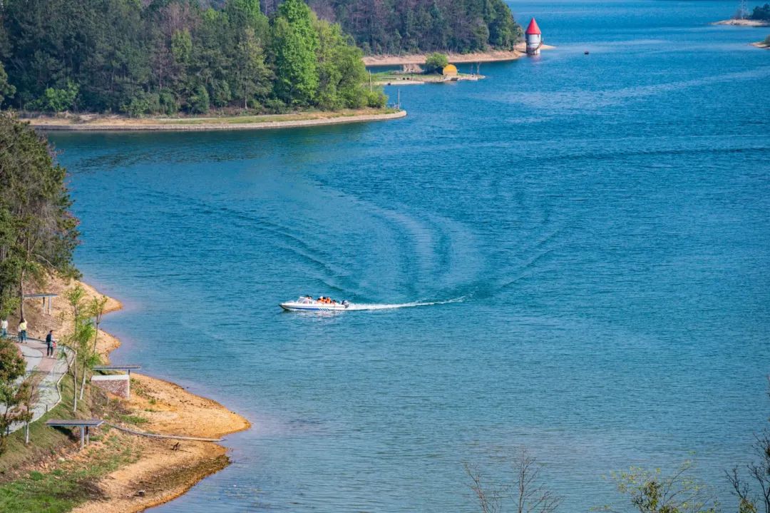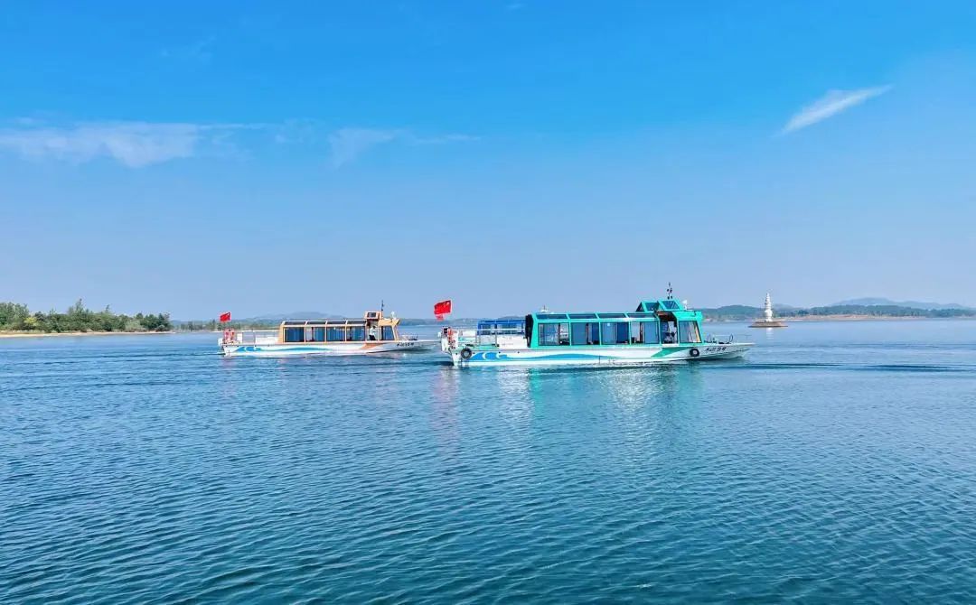 乘风破浪、踏浪逐波,青绿依次映入眼帘,在碧蓝如洗的晴空下,赏水天一色的绝美湖景。