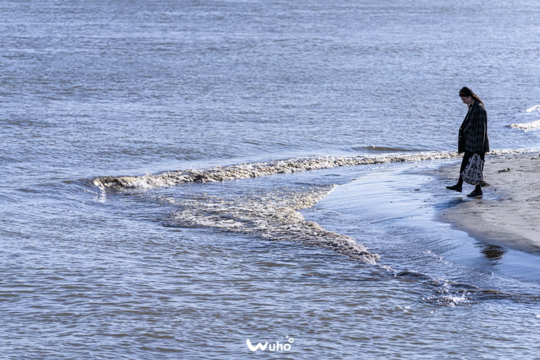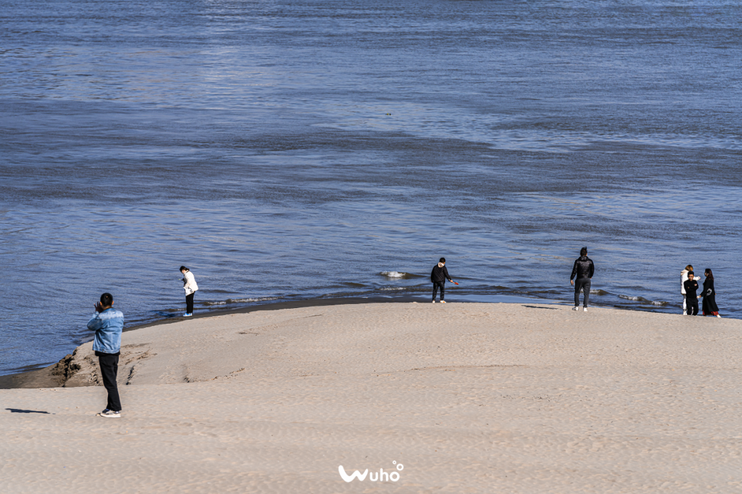 随风形成的浪不断拍打出水花涌向岸边。不经意间被风沙迷了眼睛,武汉独有的“海”,少了海水的咸,却多了一份惬意。