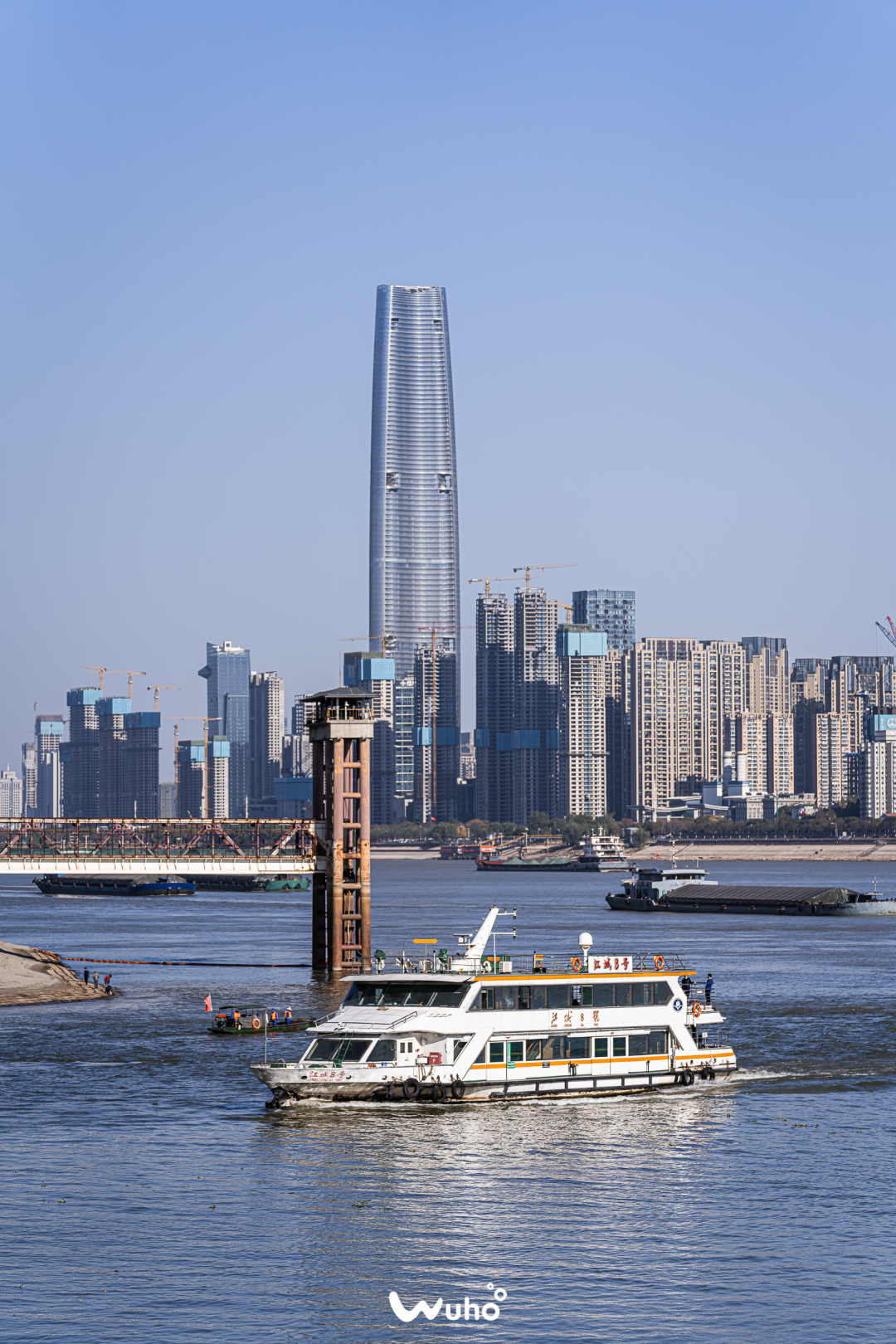 南岸嘴滨江公园,位于晴川桥下,是中国最大的河流长江和长江最大支流汉江交汇形成的冲击地带。在南岸嘴,一边是临水城市特有的温柔平静,一边是现代城市的时髦摩登。