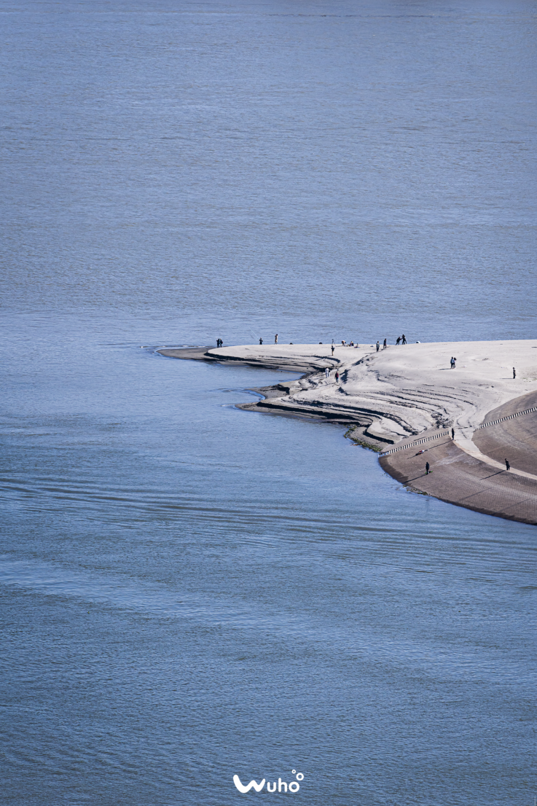 午后阳光正好,在蓝天的映衬下,长江和汉水的边界变得模糊,呈现出大片大片的蓝。被江水不断冲刷的岸线呈梯田状延伸,细软的沙从指间滑走。
