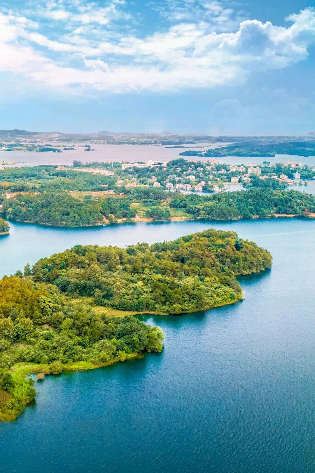 木兰湖位于武汉市黄陂区,被称为“荆楚明珠”,32个大大小小的岛屿点缀其中,长达130公里的湖岸线串联起缤纷的山水田园画卷。