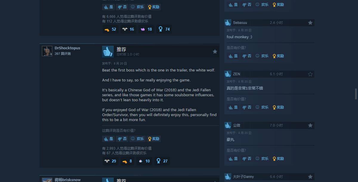I have to say, so far really enjoying the game.(不得不说,到目前为止,我真的很享受这款游戏)It's basically a Chinese God of War (2018) and the Jedi Fallen series.(它就像中国版的“战神”和“绝地武士”系列游戏)。