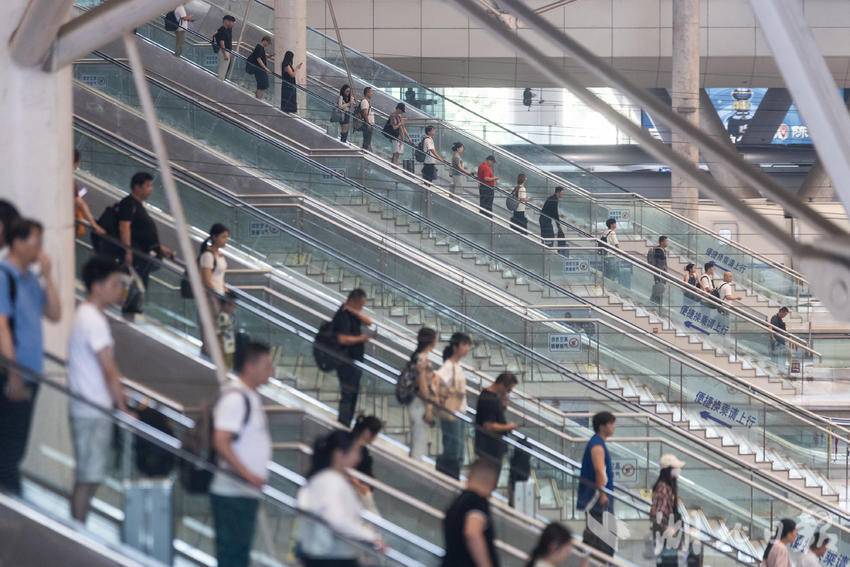 进入8月中下旬,铁路迎来暑运返程高峰,学生流、旅游流、探亲流、商务流叠加,返程客流增多。中国铁路武汉局集团有限公司加大热门方向高铁运力投放,充分满足旅客出行需求,保障旅客平安顺畅出行。(湖北日报全媒记者 柯皓 通讯员 王雪飞 摄)