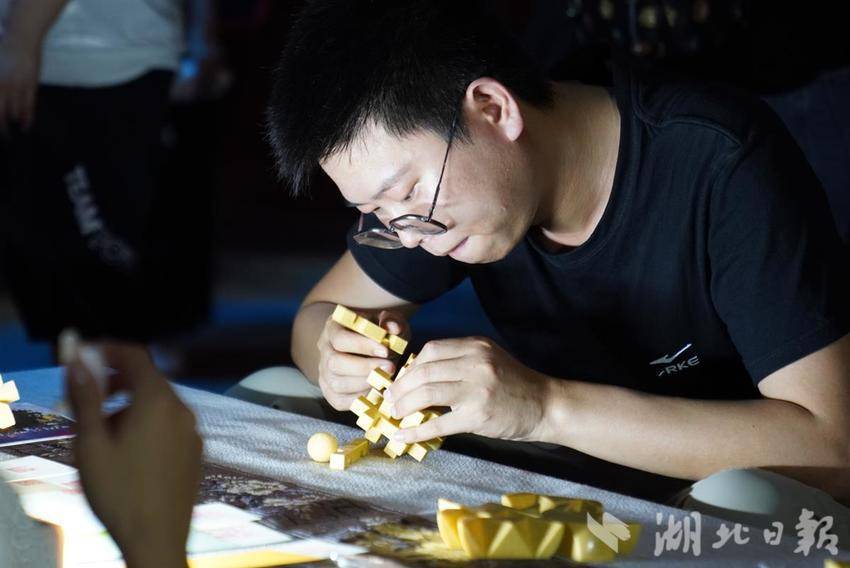 漫游园区,不仅好玩,更有好礼相送。解密孔明锁、官兵捉贼等小游戏也颇受游客欢迎。一位家长带着十岁的儿子参与解孔明锁的游戏,“将卡榫精准放置才能组合成功,抽掉任何一根木条都会散架,真是‘牵一发而动全身’,有趣极了。”小朋友变身“小鲁班”,顺利完成拼合,参与互动并集满三个印章,就获得了精美盲盒礼品。欢声笑语在这里交织,让每一个游客都在这“三国宇宙”度过了一段难忘的时光。