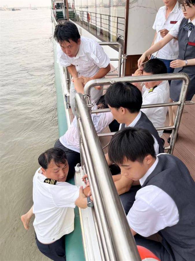 湖北日报讯(记者严芳婷、通讯员高宇、杨娟)“救命啊,我落水了,谁来帮帮我!”8月24日下午6点,粤汉码头“两江盘龙”号游船正在岸停候客,三楼吧员赵天翊耳畔忽然传来一阵急促的求救声。他迅速跑向船边,映入眼帘的是一幕令人心悬的画面——一名20岁左右的女孩正竭力抓住船体,显然已筋疲力尽,命悬一线。