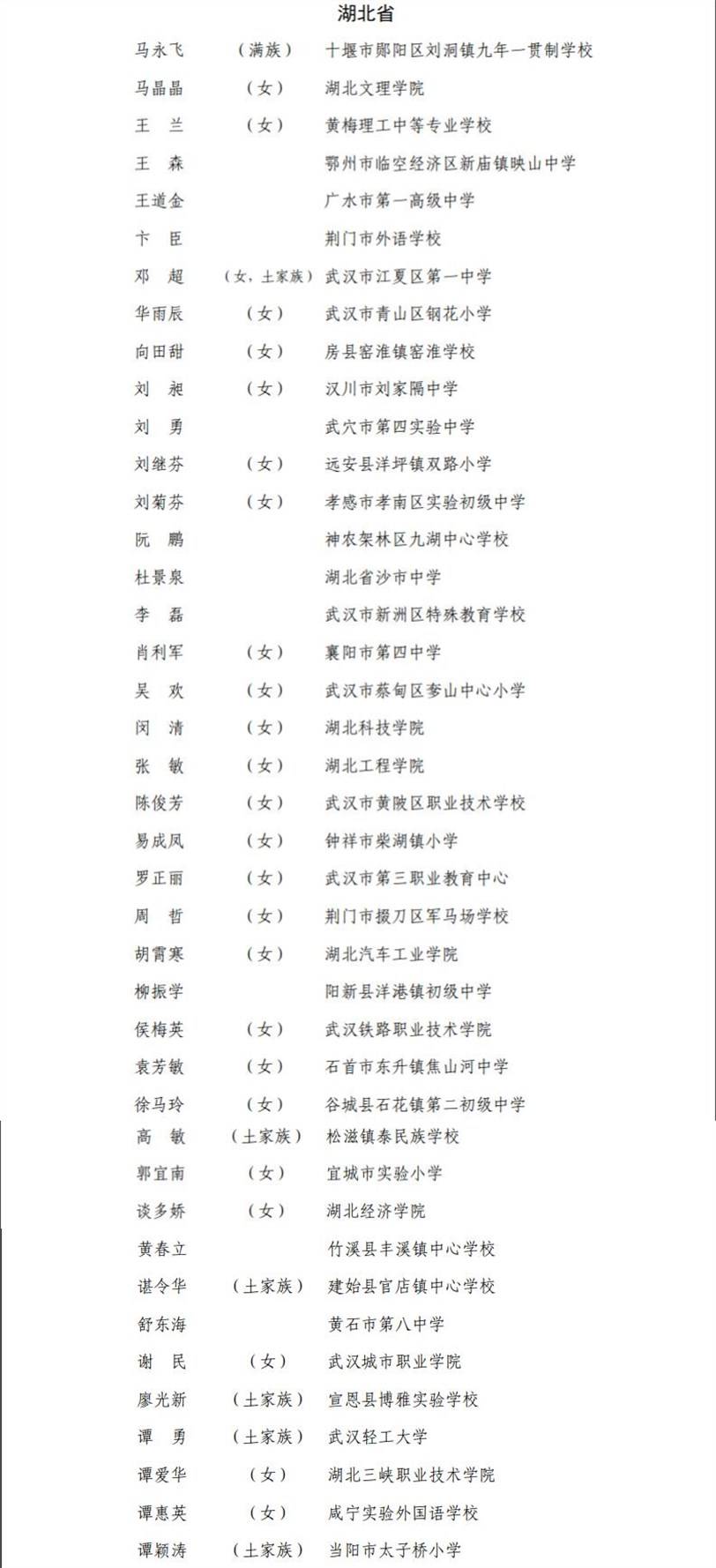 四、全国教育系统先进工作者拟表彰对象名单