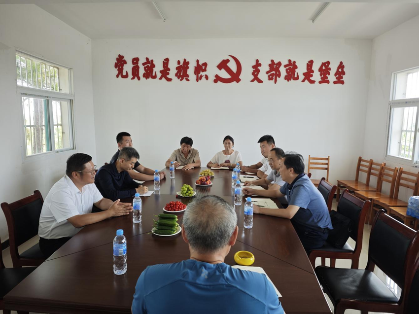 孟鹏飞一行先后来到季店乡光明村、三苏专业合作社等地,与乡党委班子成员、光明村两委干部和驻村帮扶工作队以及专业合作社负责人进行了亲切交流,详细了解公司与季店乡光明村党总支党建共建点建设和作用发挥情况,了解村级党建引领产业发展情况、农业市场主体发展现状,实地查看了三苏专业合作社新建甲鱼养殖池项目铺设底网、搭建投喂平台等进展情况,对今年中国物流集团帮扶项目进展表示肯定,并就三苏专业合作社深入发展电商经济、提升品牌影响力等方面提出了一些科学可行的好建议。