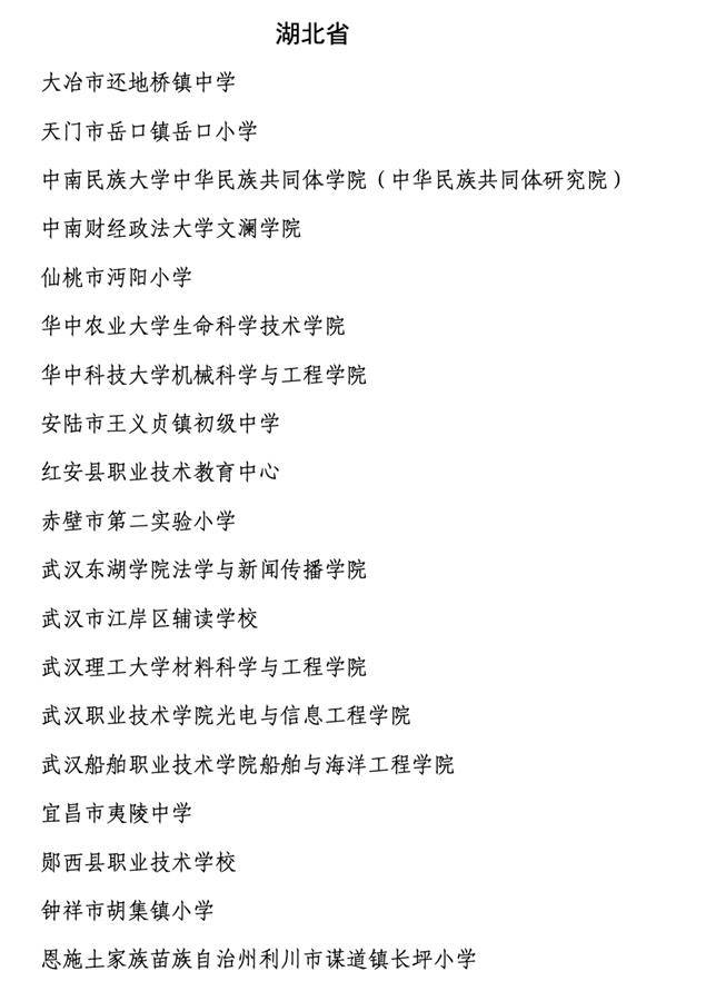 湖北省入选的全国教育系统先进集体