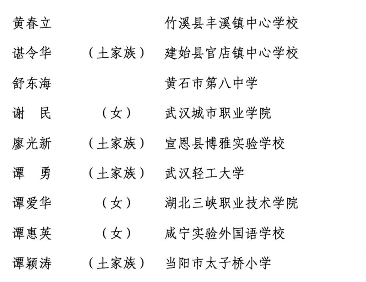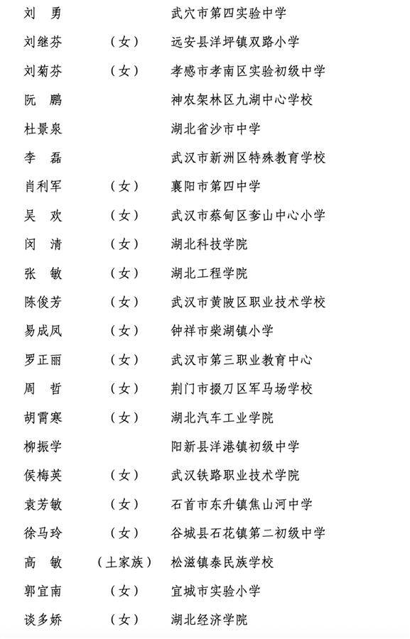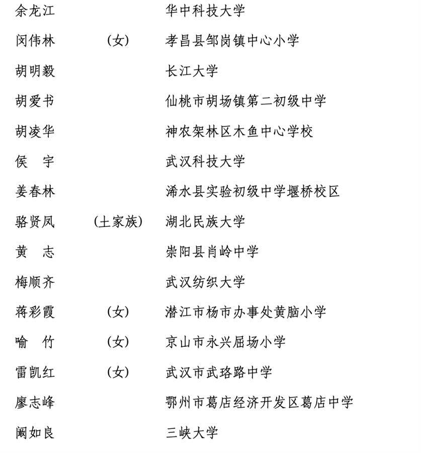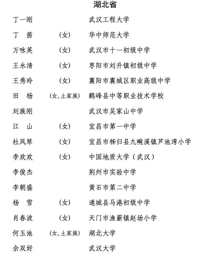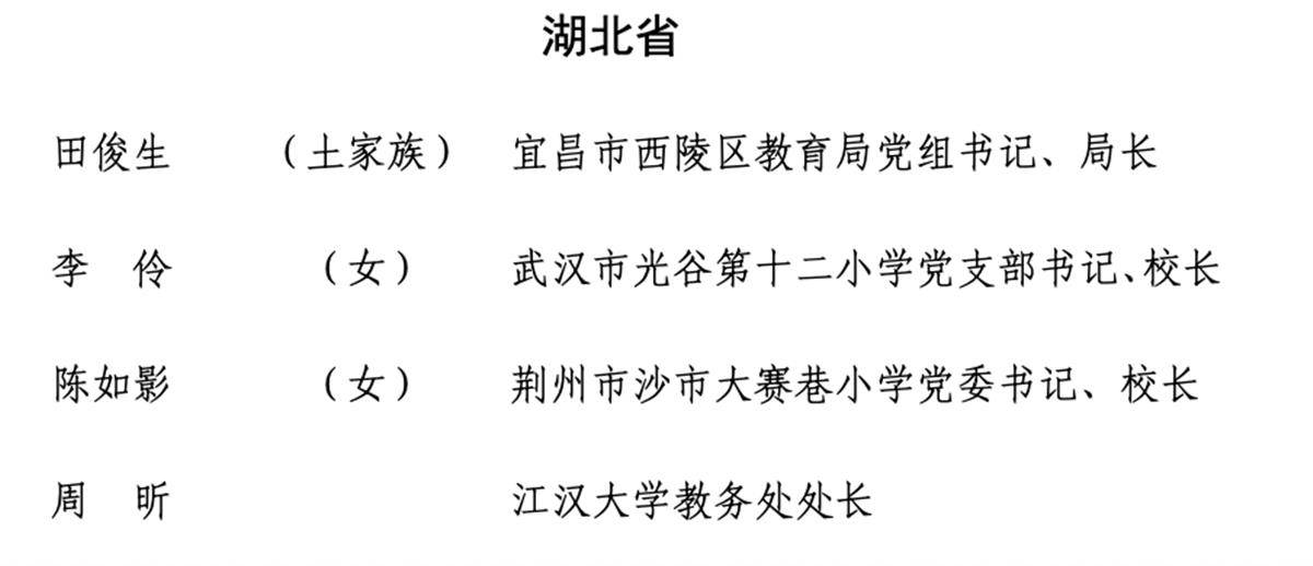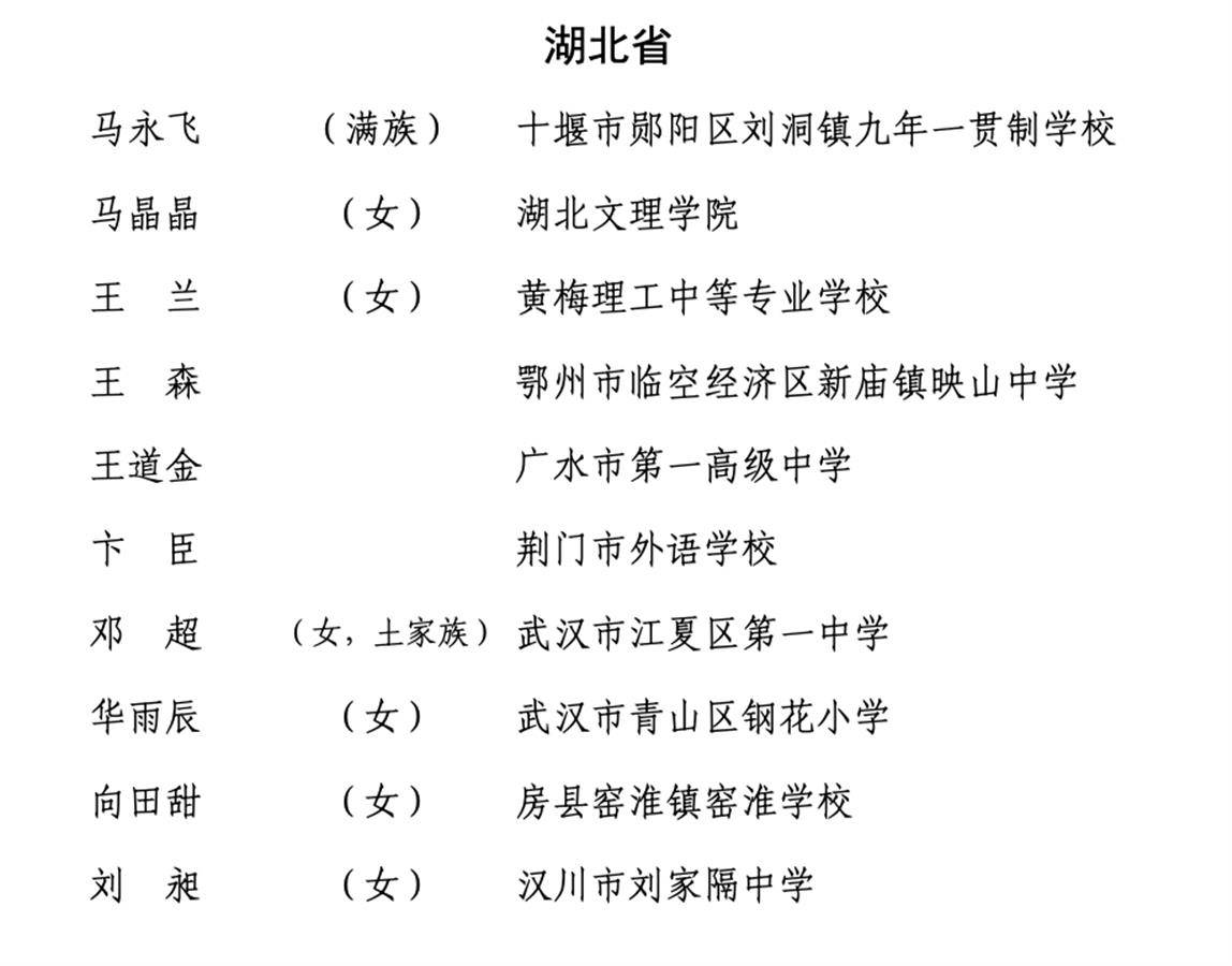 湖北省入选的全国优秀教师