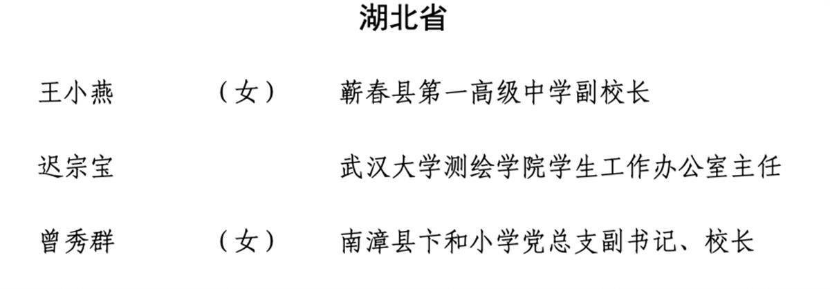 湖北省入选的全国教育系统先进工作者