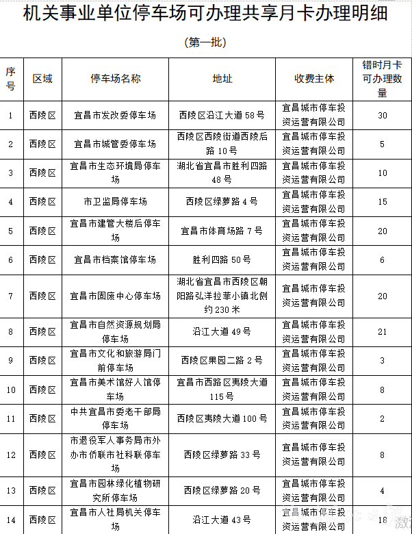 湖北日报客户端讯(记者郑岚、通讯员杨露)工作日18:30至次日7:00及双休日全天可停放,50元/月。为满足市民群众停车需求,宜昌城区机关事业单位停车场在错时开放的基础上,推出错时共享月卡优惠活动。