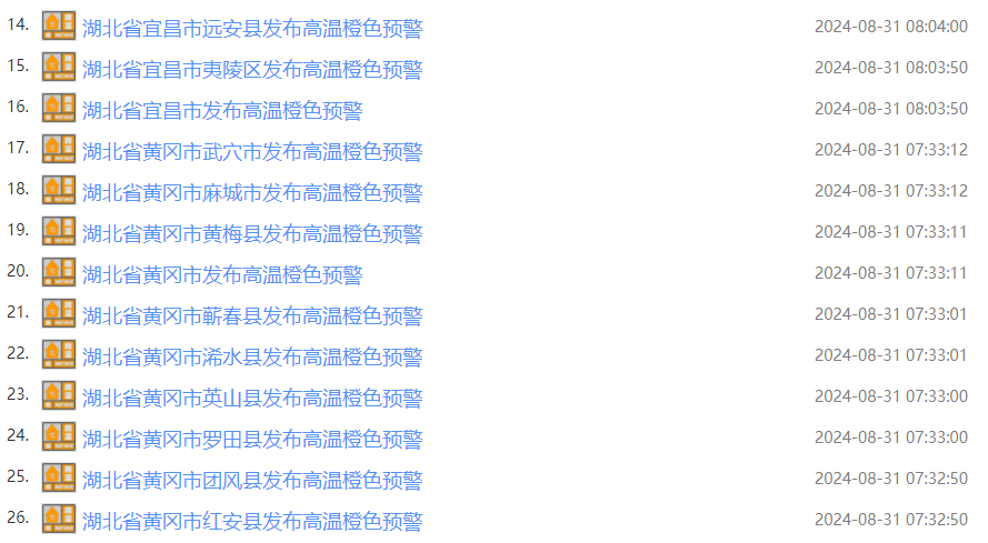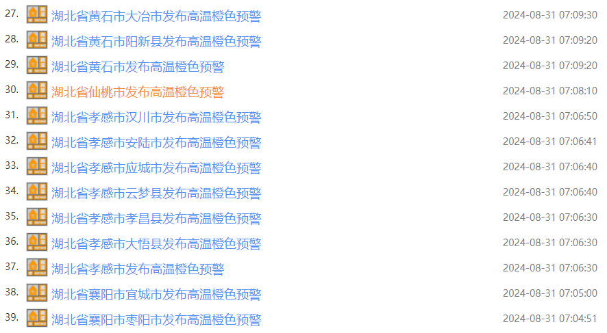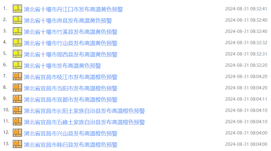 湖北连发83条高温预警