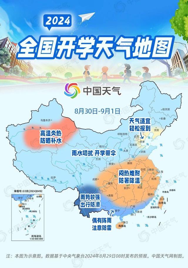 在中国天天气网发布的全国开学天气地图中