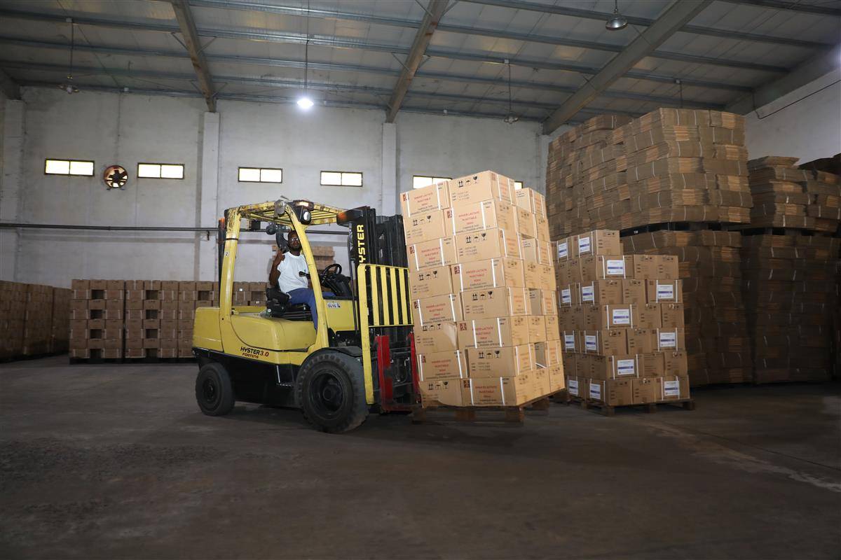 9月4日,位于马里的人福非洲医药工厂,物流车已经等候多时,准备将刚下线的糖浆、大输液等药品,送往该国的医院、诊所和药店。