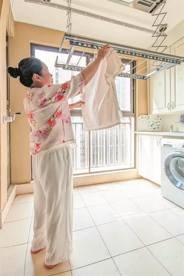 关东街道江南社区,万科城花璟苑小区内,60岁的吴琦阿姨家今年5月就已完成了适老改造。她说:“有了智能晾衣架,再也不用去楼顶晒被子了,晾衣服轻轻松松,智能马桶也让生活更方便,希望未来能有更多的智能科技融入养老生活。”