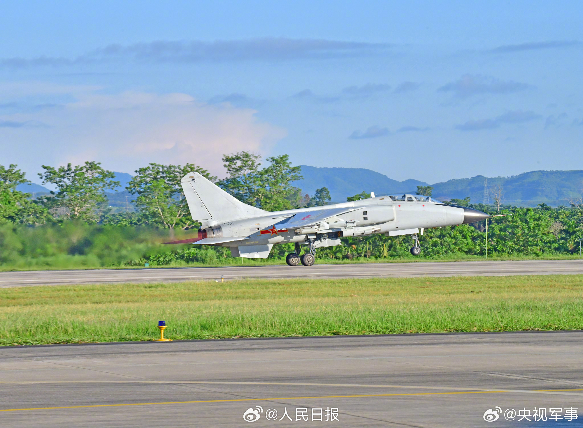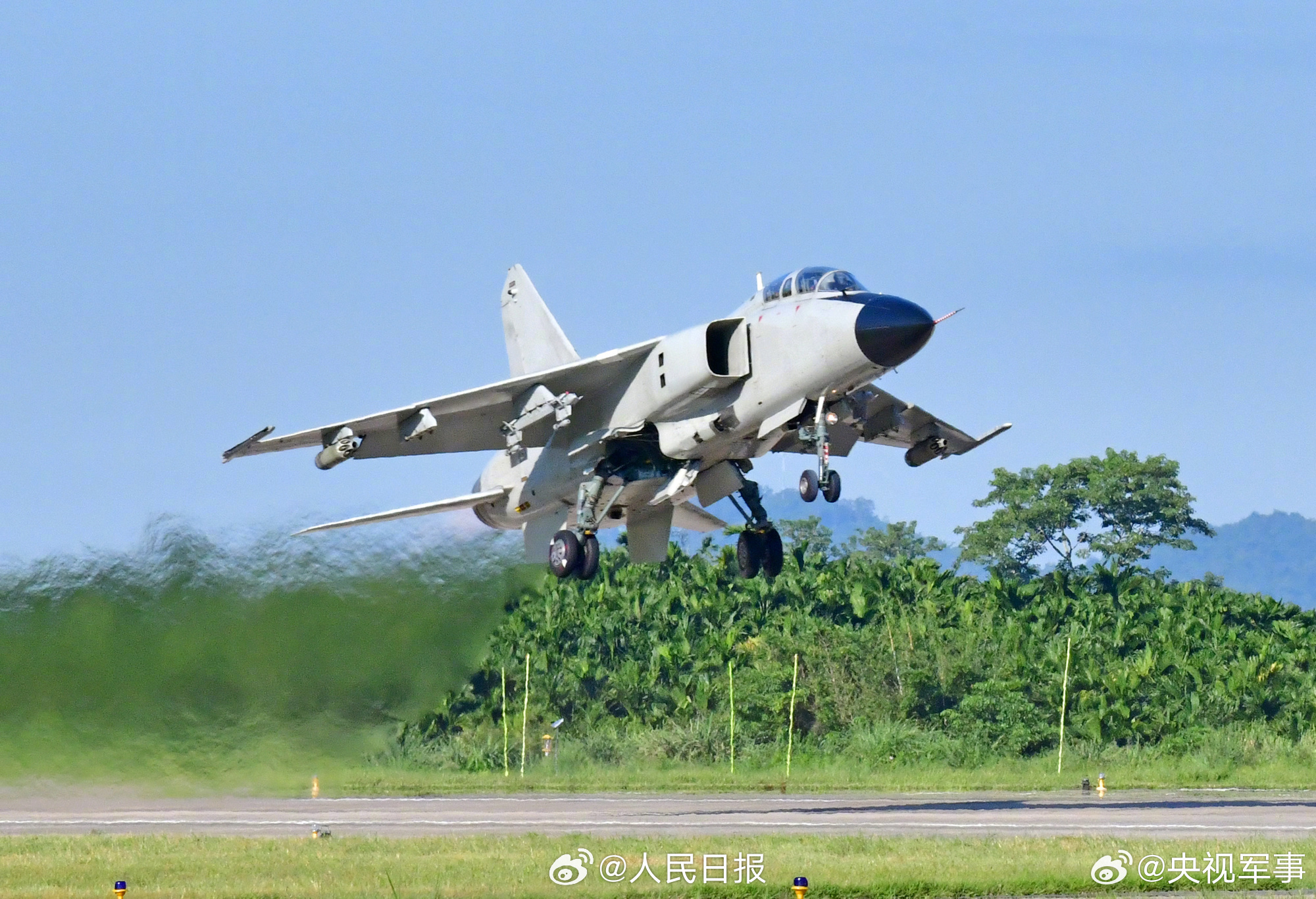 近日,南部战区空军航空兵某旅开展海(地)靶实弹射击训练。战机编队跟进起飞,快速形成战术队形奔赴目标空域。(来源:央视军事)