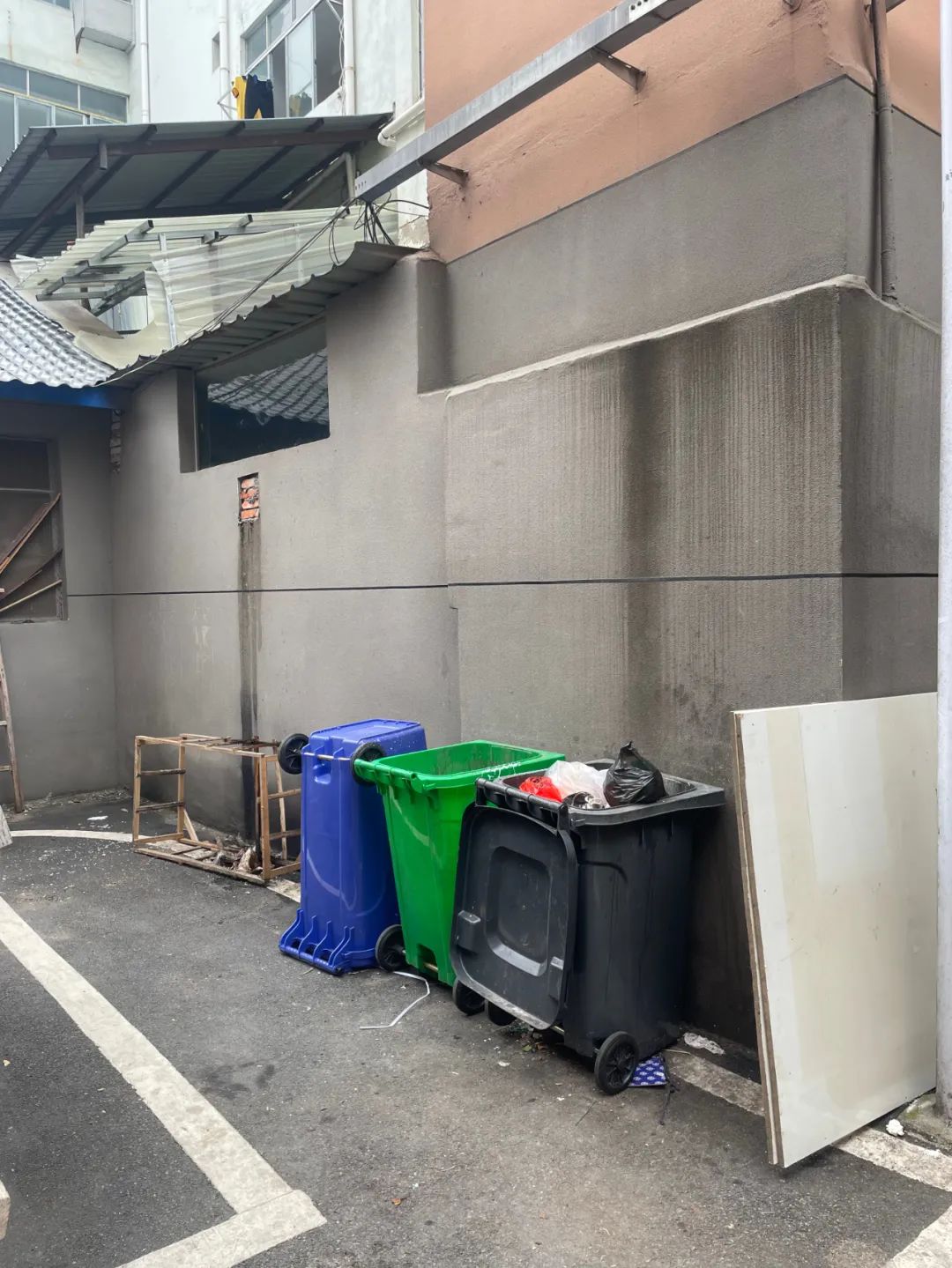 该小区垃圾未分类,垃圾清理不及时;楼道墙壁脱色掉皮严重,消防器材无检查记录;院内共享单车、机动车、电动车等车辆随意停放,有乱搭乱牵、飞线充电现象,院内楼道、停车棚、公共场地乱堆杂物现象突出,整体秩序混乱。