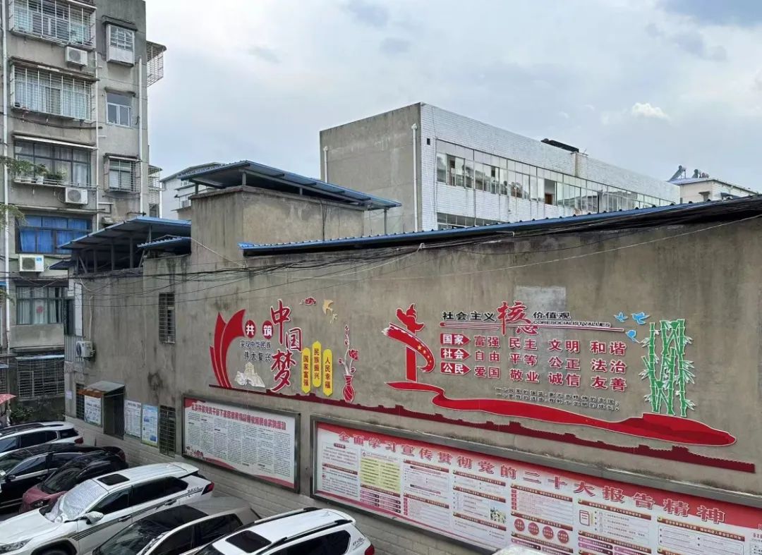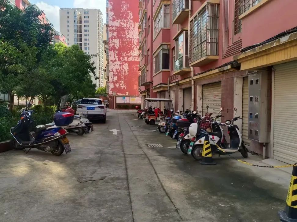 该小区创文宣传氛围浓厚,公益广告种类齐全;院内地面干净整洁;“三车”按照划线有序停放,无飞线充电、乱搭乱建、乱堆乱放现象,院内整体秩序良好。