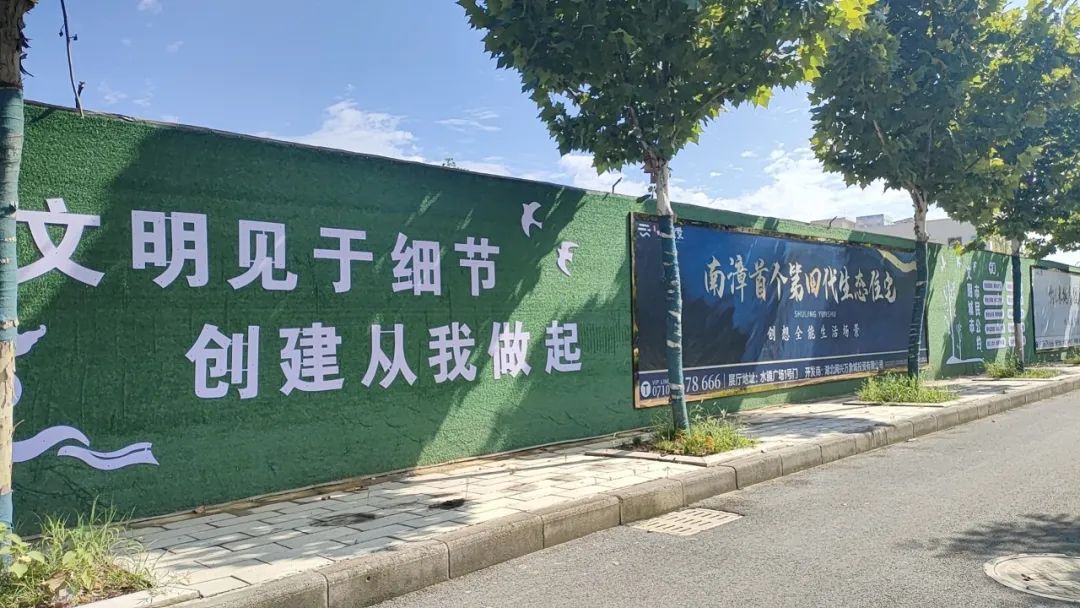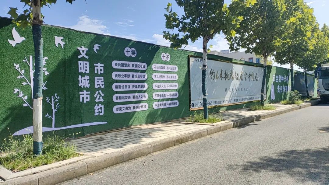 该工地建筑围挡无破损,创文公益广告制作整齐美观,公益广告占比达到30%以上;施工现场地面干净,无破损;现场无骂人、抽烟、说脏话等不文明现象,整体管理秩序良好。
