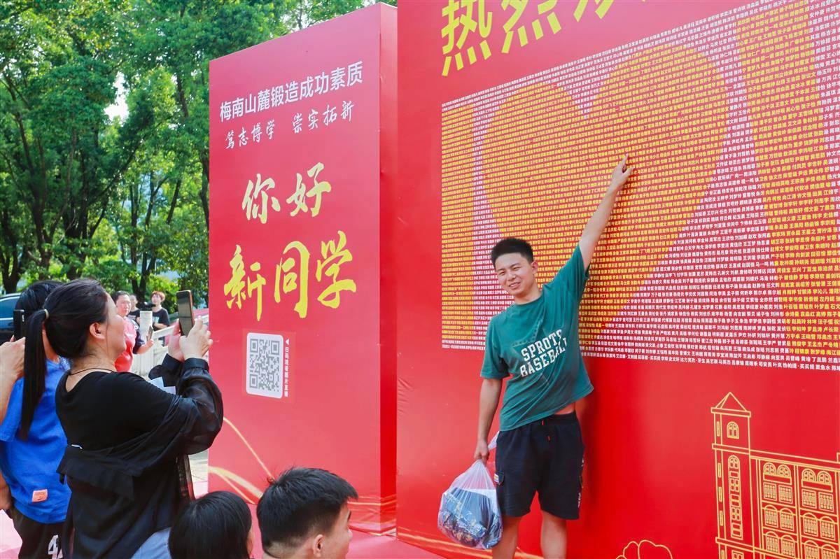 湖北日报讯(记者韩晓玲、通讯员周黎)“我的名字在这里!”“儿子站过去,和你的名字合个影。”9月7日至8日,武昌理工学院2024级新生开学报到。该校大门口的迎新喷绘墙将5000余名新生的名字巧妙融入,成为新生们的“热门”打卡点。