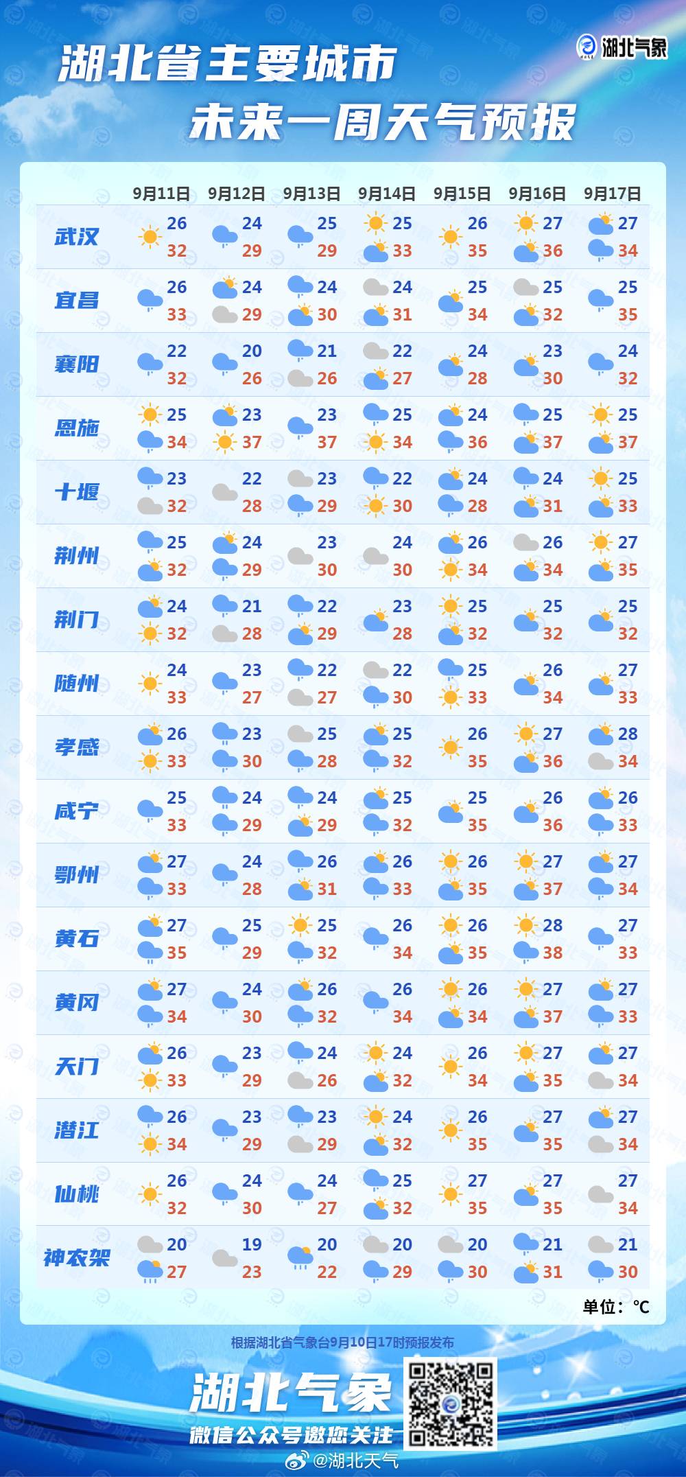 9月14日至11月4日,首届长江文化艺术季将在湖北举办,9月14日将在武汉举办开幕式。11至14日,多云有分散阵雨。开幕式当天(14日)午后至傍晚有阵雨,晚上转为阴天,江面阵风5到6级。