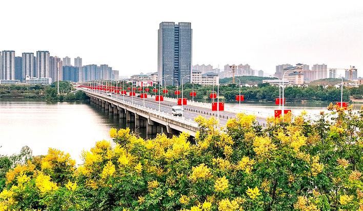 2023年国庆期间武汉街头悬挂的国旗 本报资料图片