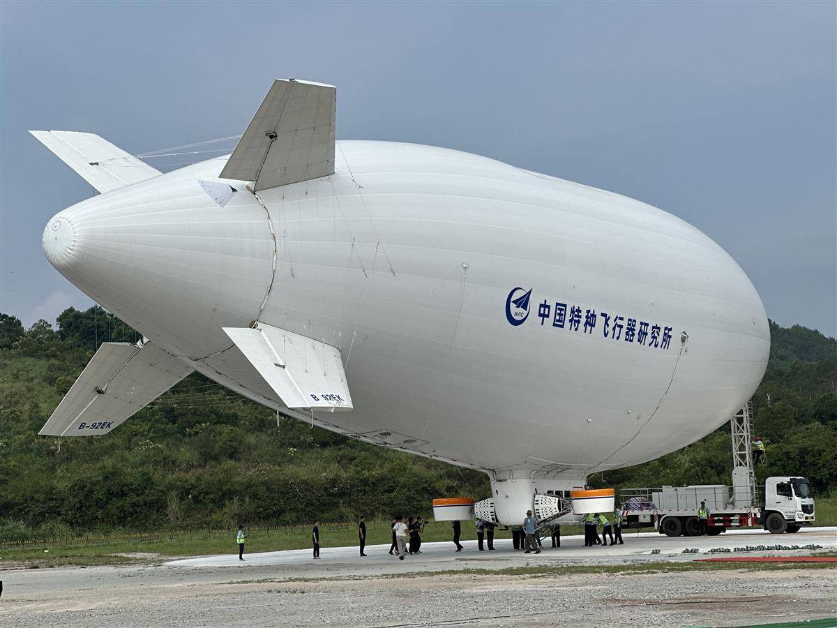 “祥云”AS700载人飞艇准备进行演示飞行。(湖北日报全媒记者 许旷 通讯员 梅春艳 摄)