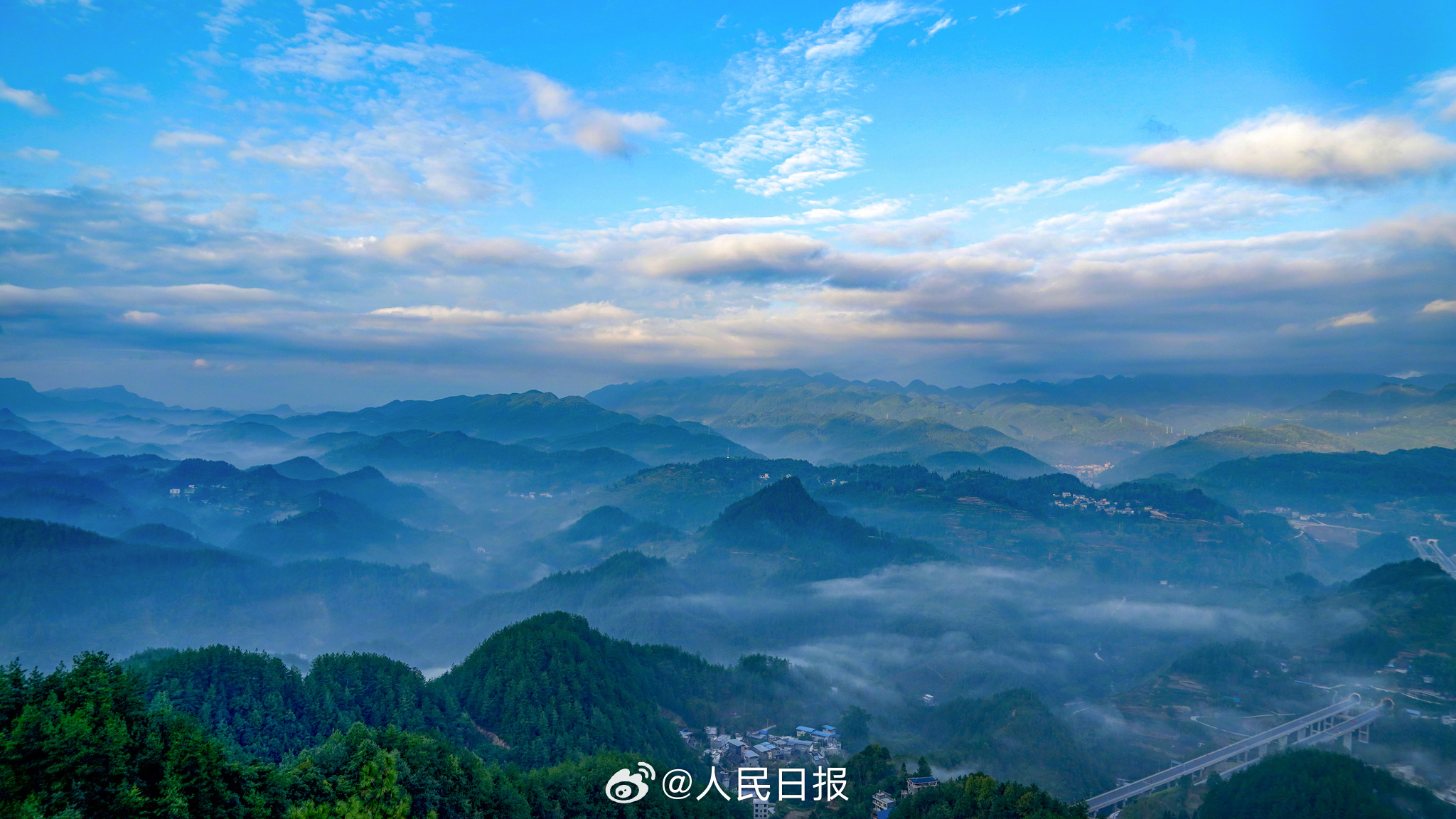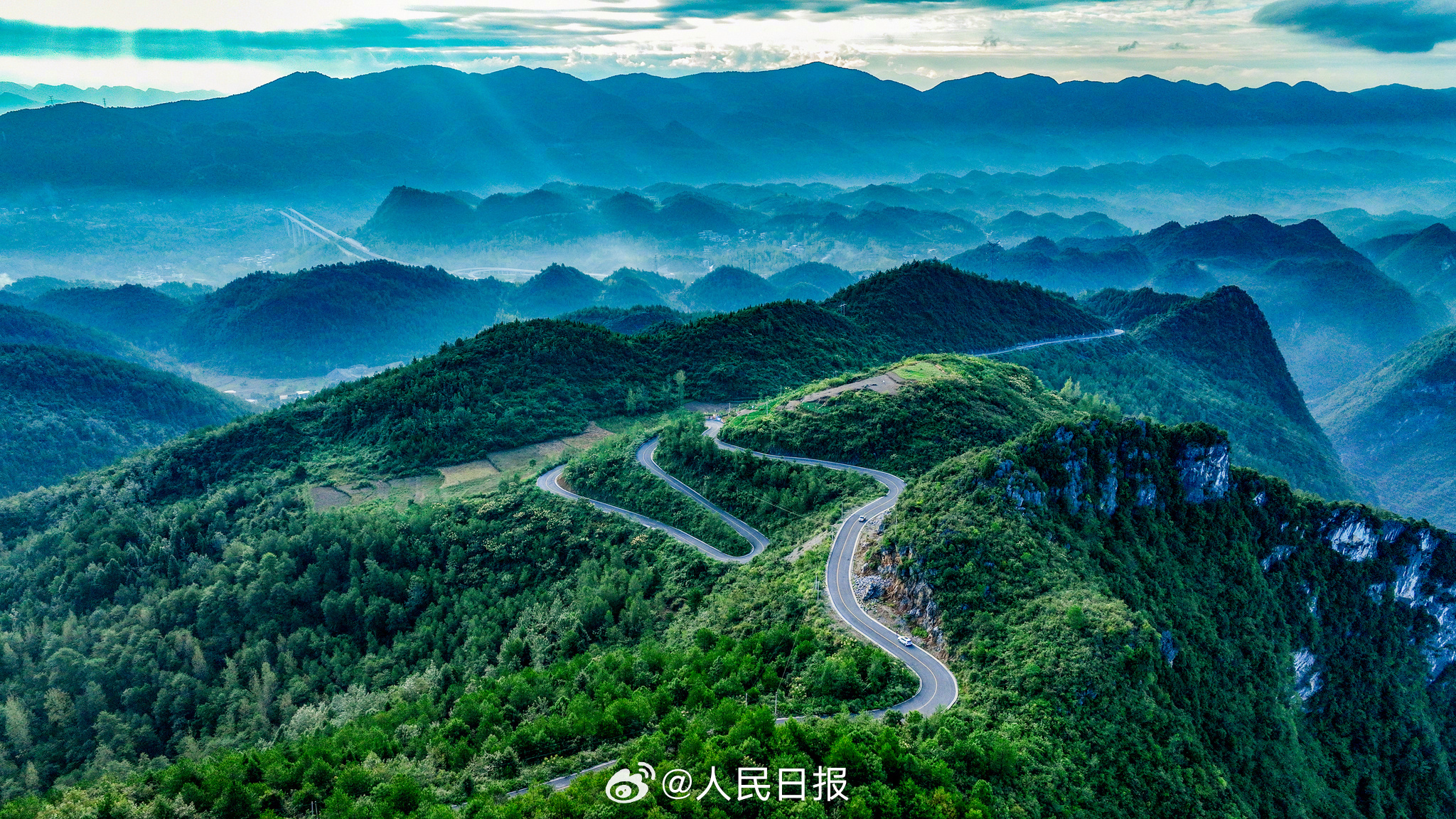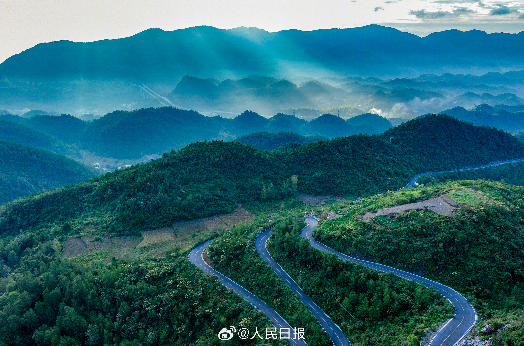 9月14日,重庆,酉阳土家族苗族自治县丁市镇,山道蜿蜒,霞光斜射,云雾缭绕,如梦似幻。云影下的重庆像开了梦幻滤镜。