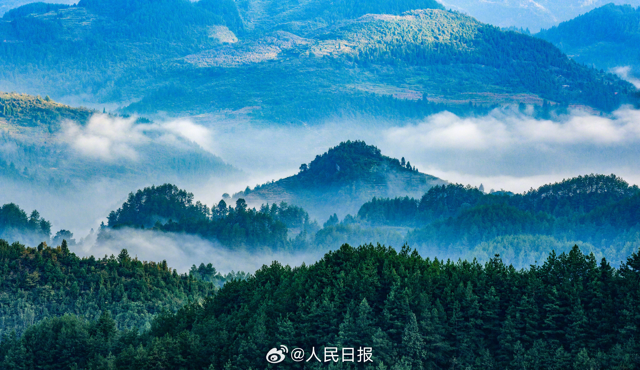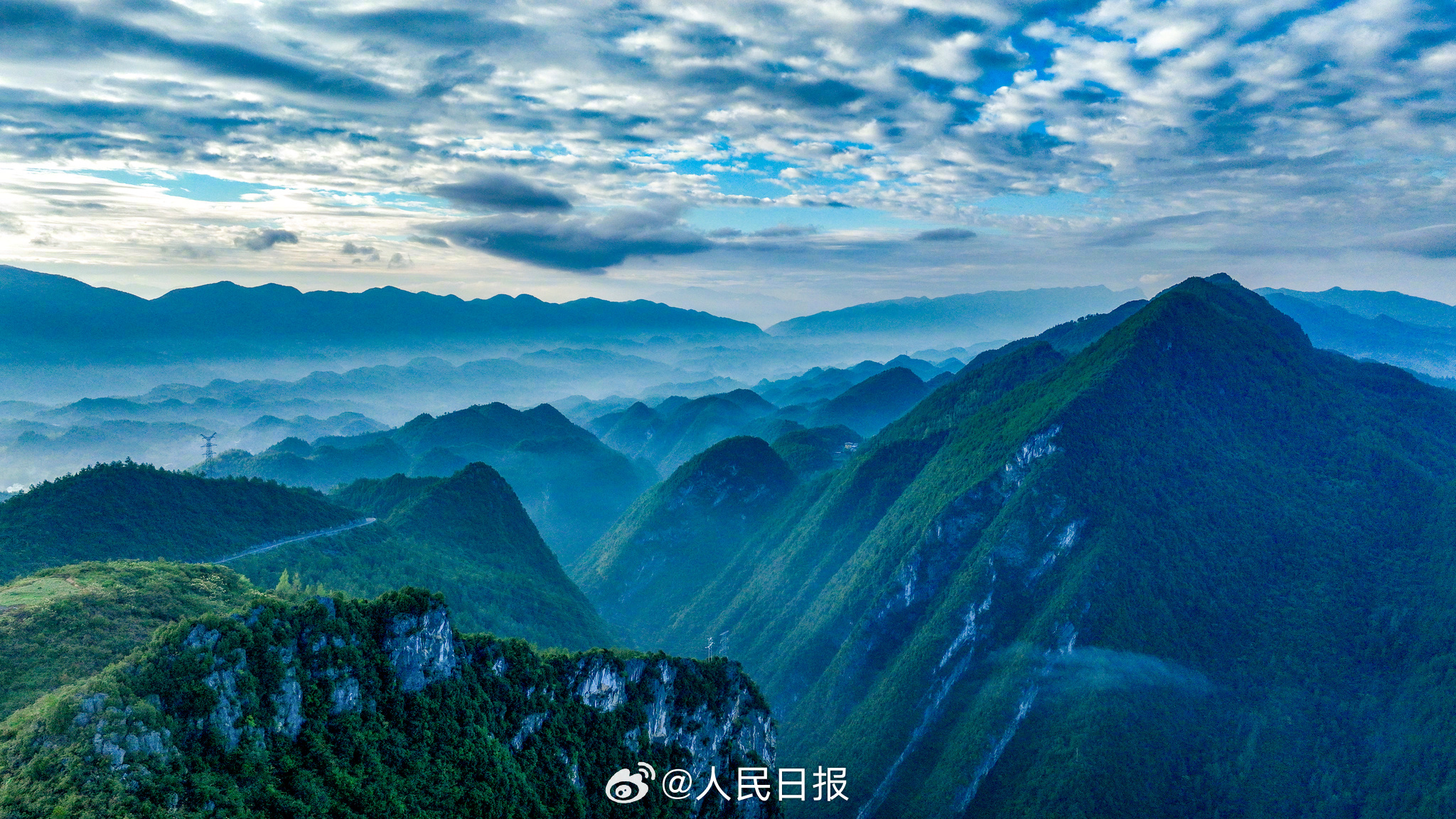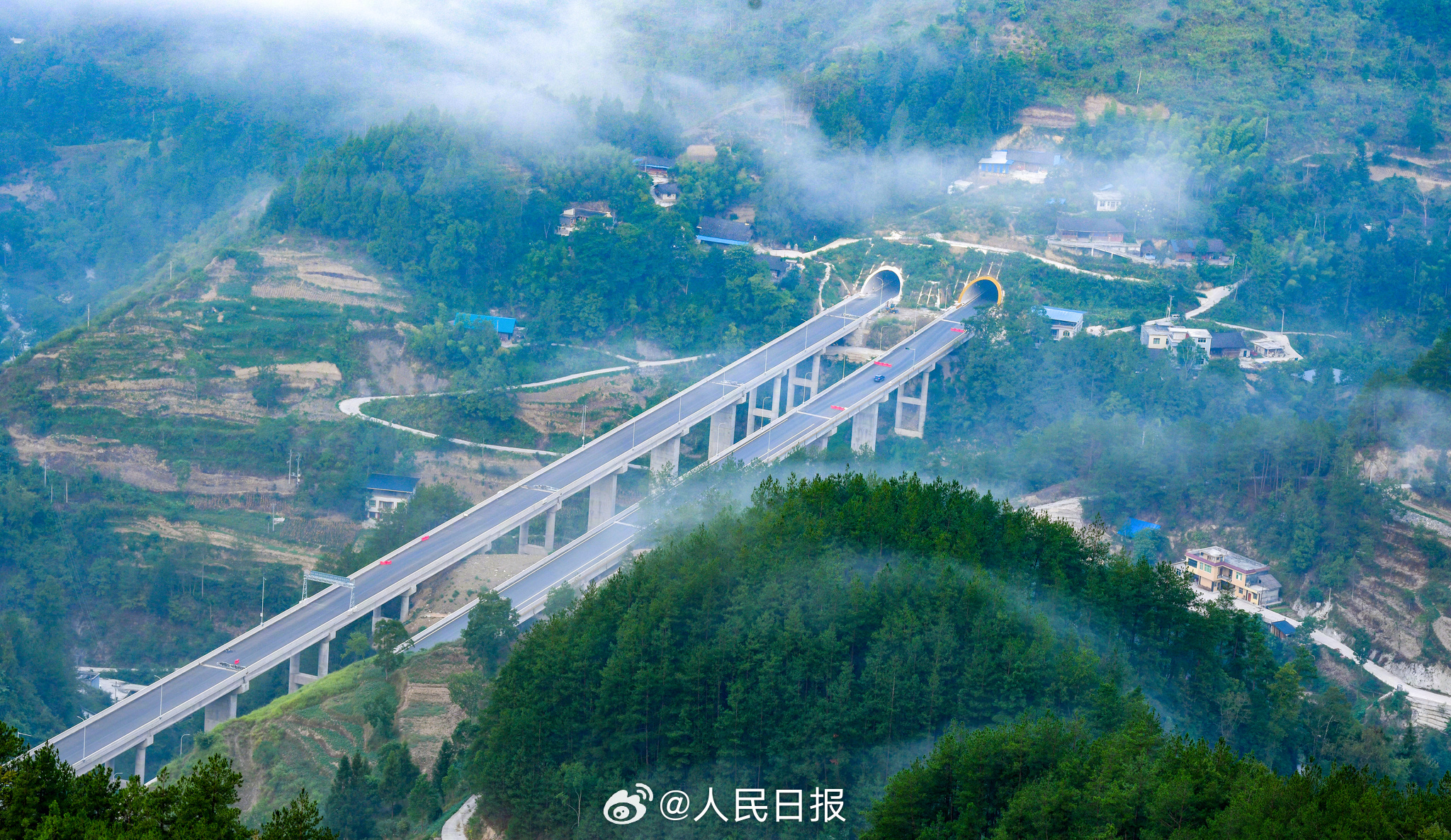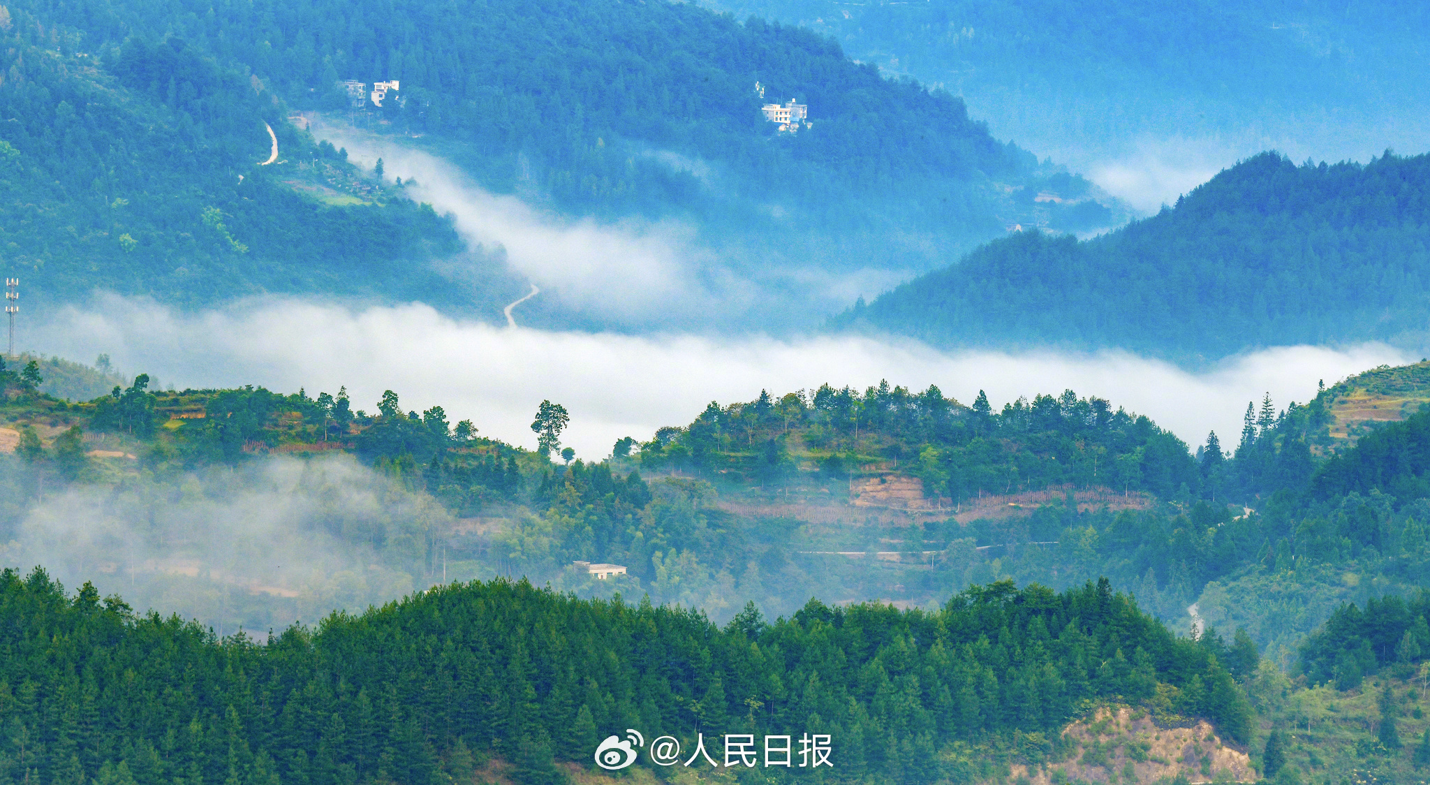 9月14日,重庆,酉阳土家族苗族自治县丁市镇,山道蜿蜒,霞光斜射,云雾缭绕,如梦似幻。云影下的重庆像开了梦幻滤镜。