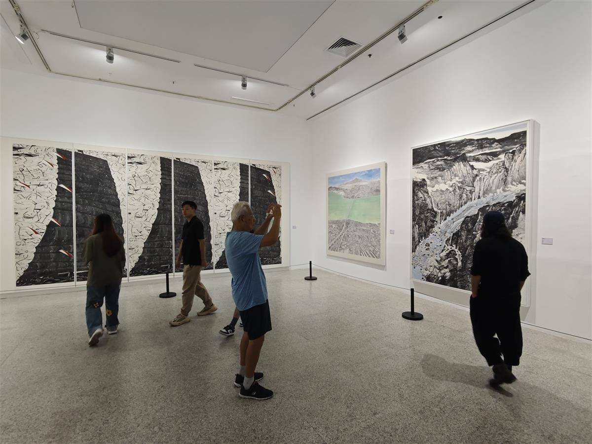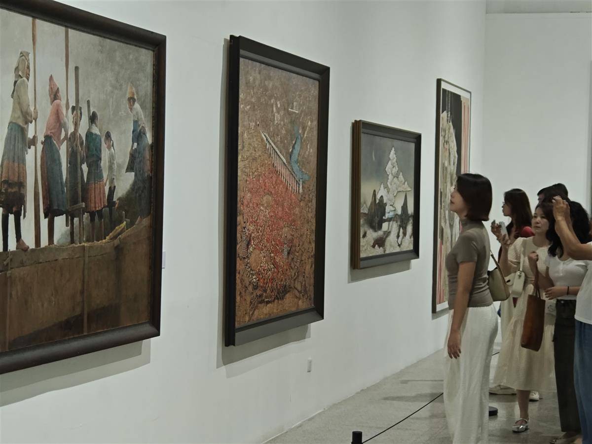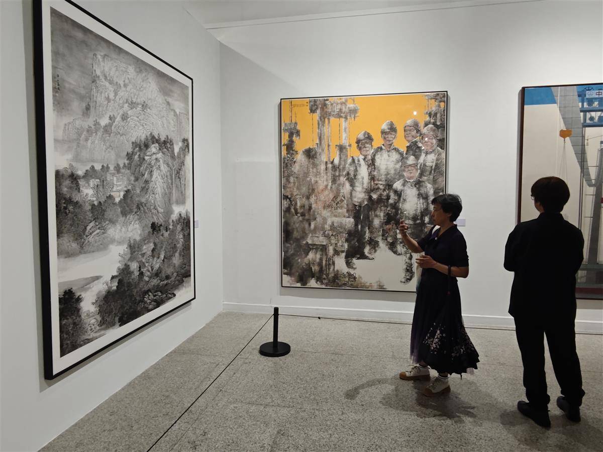 “新象长江”主题美术作品展览吸引市民游客观展。湖北日报全媒记者 张歆 摄