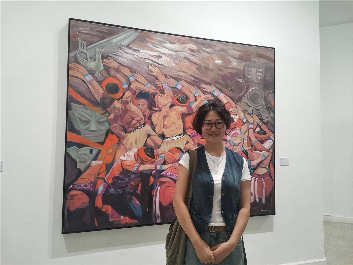 展览聚焦群众生活,表达艺术家对这片土地的乡愁诗意和对新时代的无限憧憬。黄海蓉作品《早安小巷》,以写实手法捕捉晨光斜照下老街小巷充满烟火气的生活场景,以金色晨光为意趣,投射人们美好祥和的生活本色。李碧红作品《长江潮——母亲河》,通过三星堆面具、虎座鸟架鼓、编钟及肉连响、摆手舞等历史文化符号,以浪漫主义手法表达长江流域劳动人民的勇敢豪放、锲而不舍之精神。