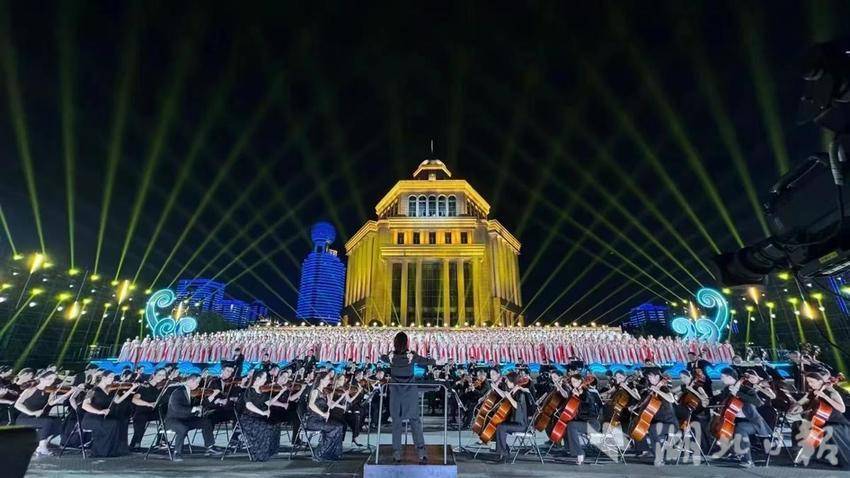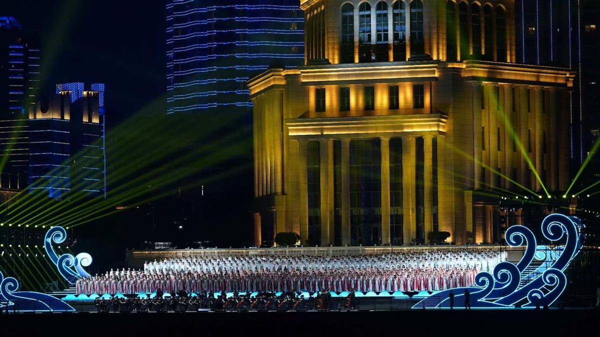在开幕式的尾声,东方交响乐团与声乐系合唱团在激光秀与合唱《我的祖国》中,与武汉长江大桥的璀璨光华一同向伟大祖国送上生日的问候与祝愿。