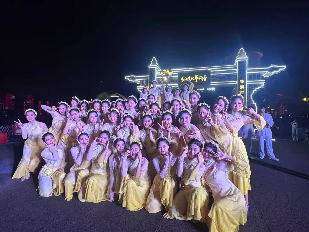 舞蹈系55名学生参演民俗风情歌舞《长江万里长》,用舞姿舞韵串联起长江流域13省区市的人文风情,深情赞颂了孕育中华民族多彩文明的生命之河。