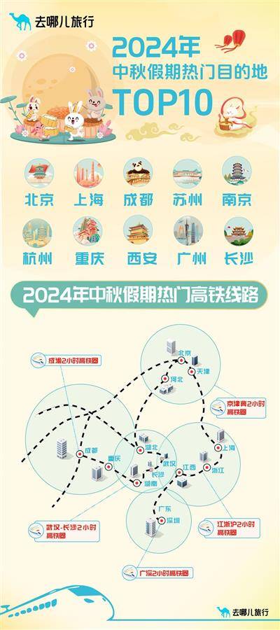 今年中秋夹在暑期和“十一”中间,是出游淡季。从旅客结构来看,相较暑期,探亲群体占比增长较明显,旅游占比减少。从年龄来看,亲子游、银发族群体占比明显回落。更多“打工人”选择回乡探亲,或是短途周边游。数据显示,江浙沪2小时高铁圈、广深2小时高铁圈、成渝2小时高铁圈、京津冀2小时高铁圈、武汉-长沙2小时高铁圈旅客流动更频繁。