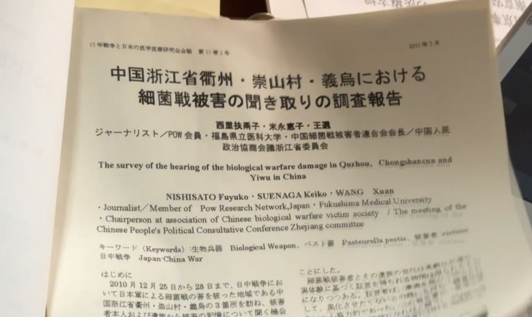 福岛县立医科大学医学部讲师 末永惠子:对浙江省实施细菌战攻击,主要是由“荣字1644部队”来实施的。不仅公然使用飞机散播病菌来实施细菌战,也为间谍暗杀活动开发相关道具。这是已经被证明的事实。