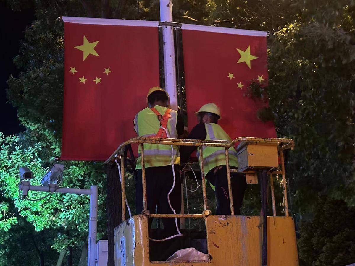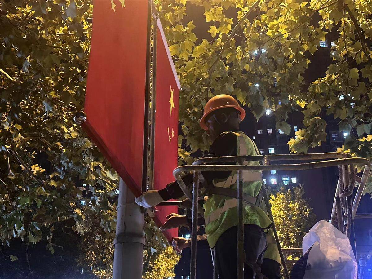 国旗张挂期间,城管部门会加派工作人员开展巡查工作,对有脱落、污损、褪色等情形的国旗及时更换、维护,为广大市民营造浓厚的国庆氛围。